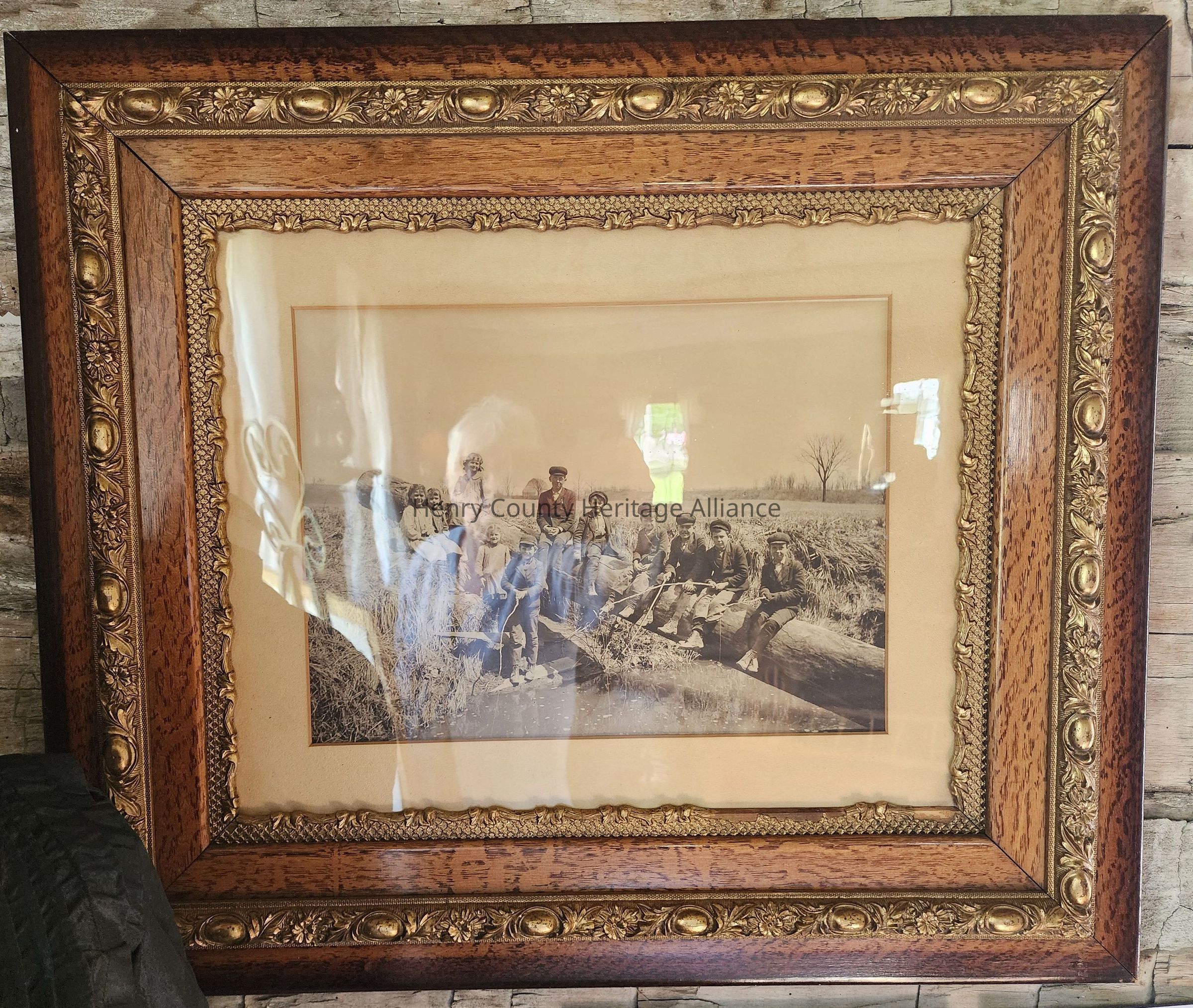 Boys along Creek, Group Photo, Antique Stacked Victorian Frame