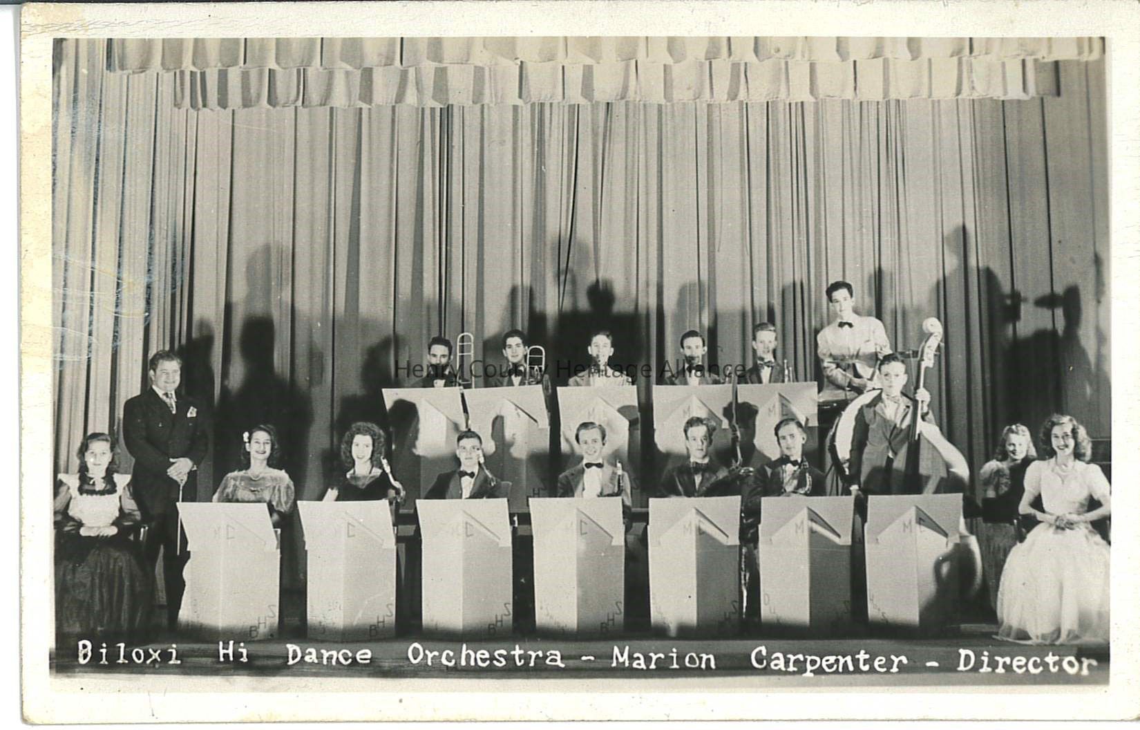 Postcard 0f Bioxi Hi Dance Orchestra Received by le Rue, 1945. Marion Carpenter, Director