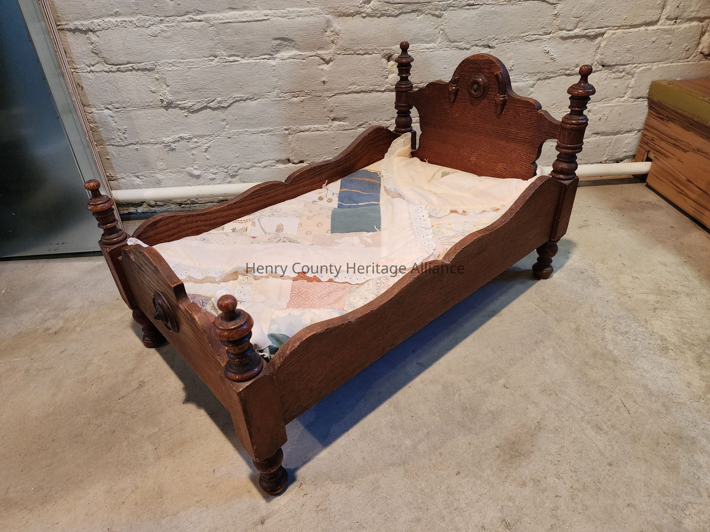 Child's Walnut Baby Doll Bed & Bedclothing