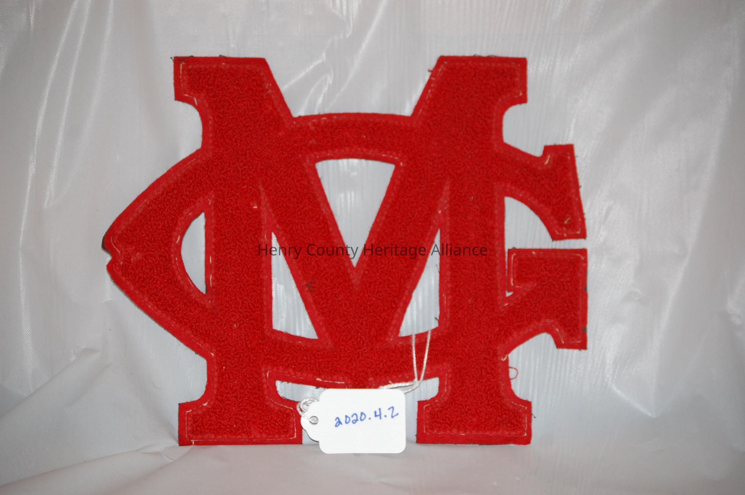 Letters of M and G for Malinta - Grelton front is red, back is black with red thread