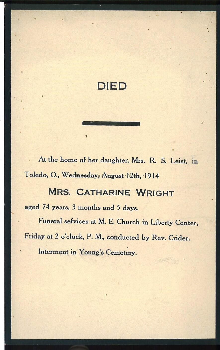 Death Notice of Catherine Wright