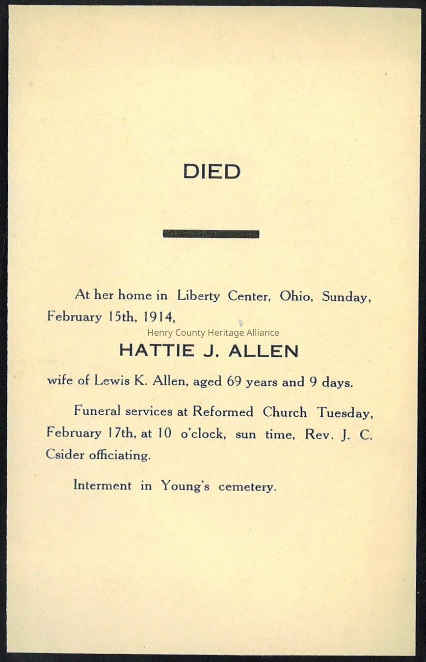 Death Notice of Hattie J. Allen