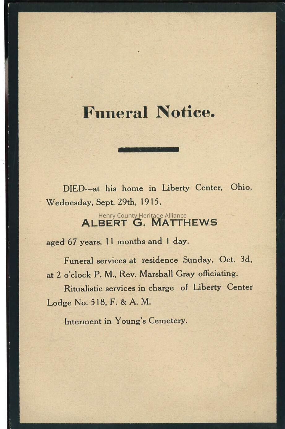 Death Notice of Albert G. Matthews