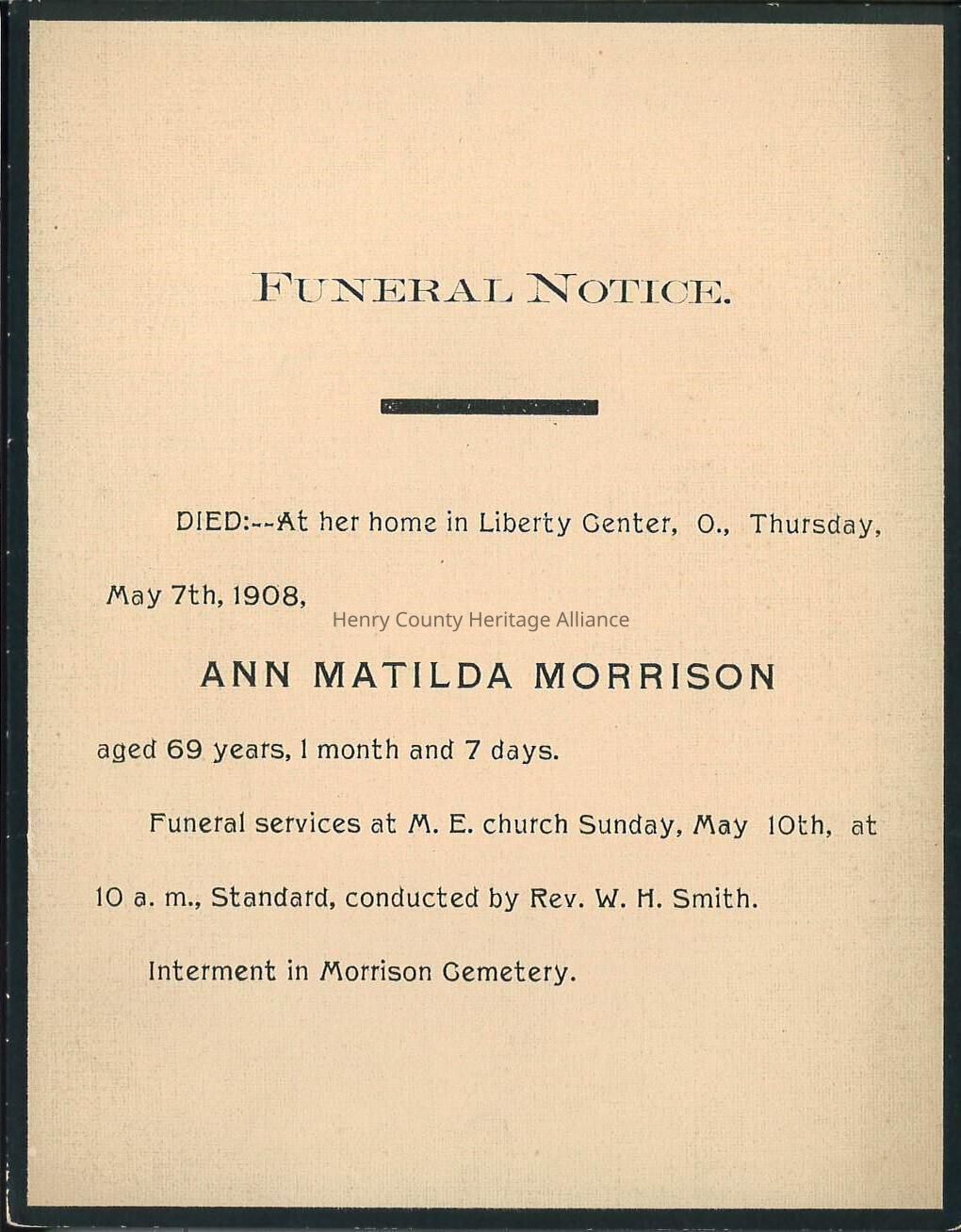Death Notice of Ann Matilda Morrison