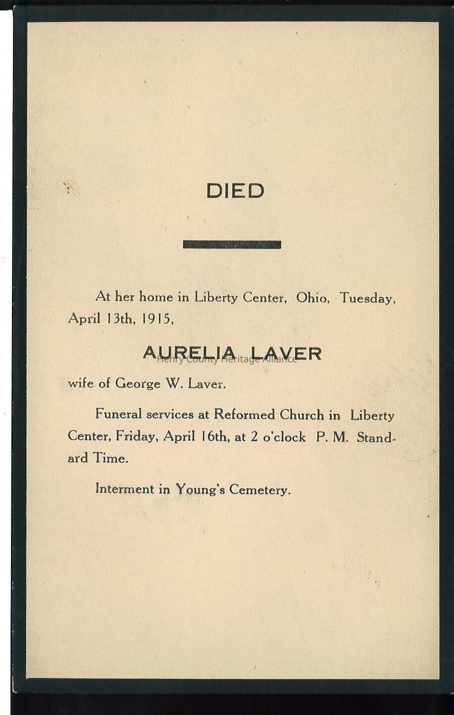 Death Notice of Aurelia Laver