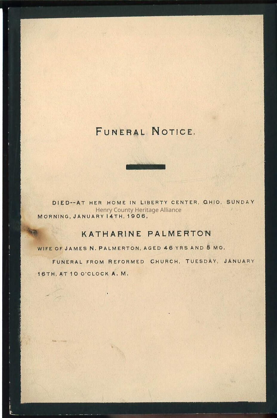 Death Notice of Katharine Palmerton