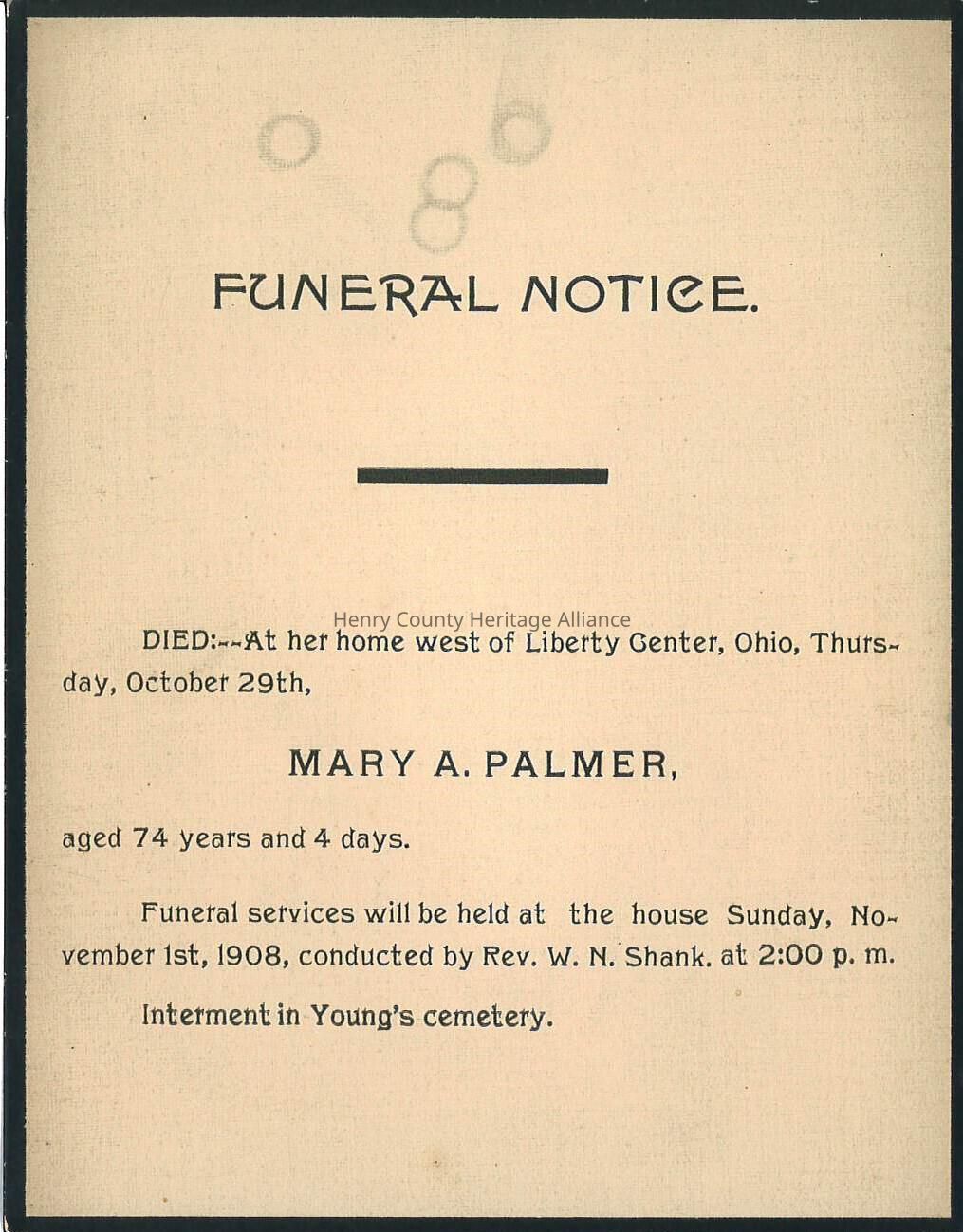Death Notice of Mary A. Palmer