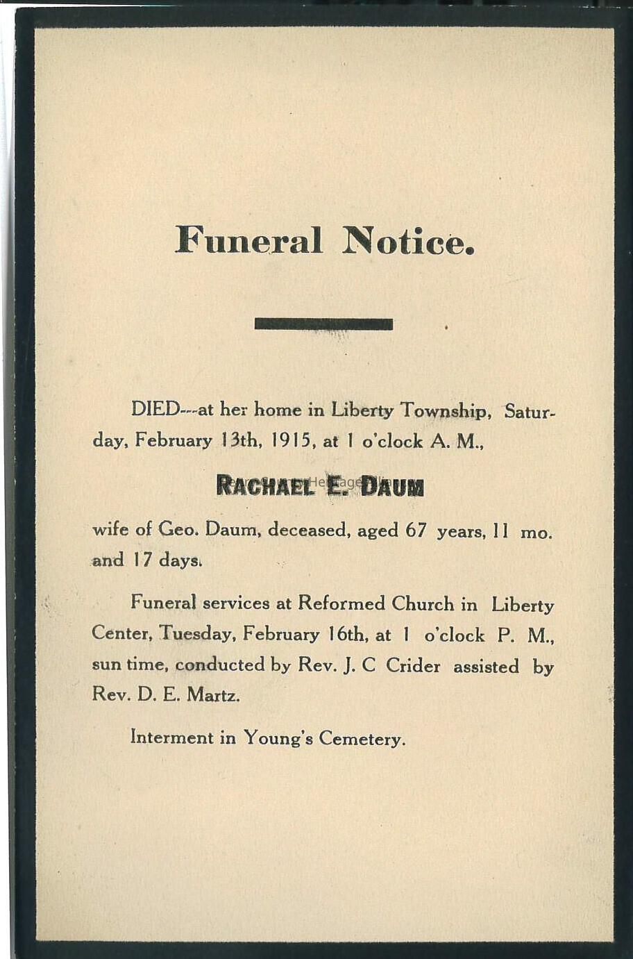 Death Notice of Rachael E. Daum