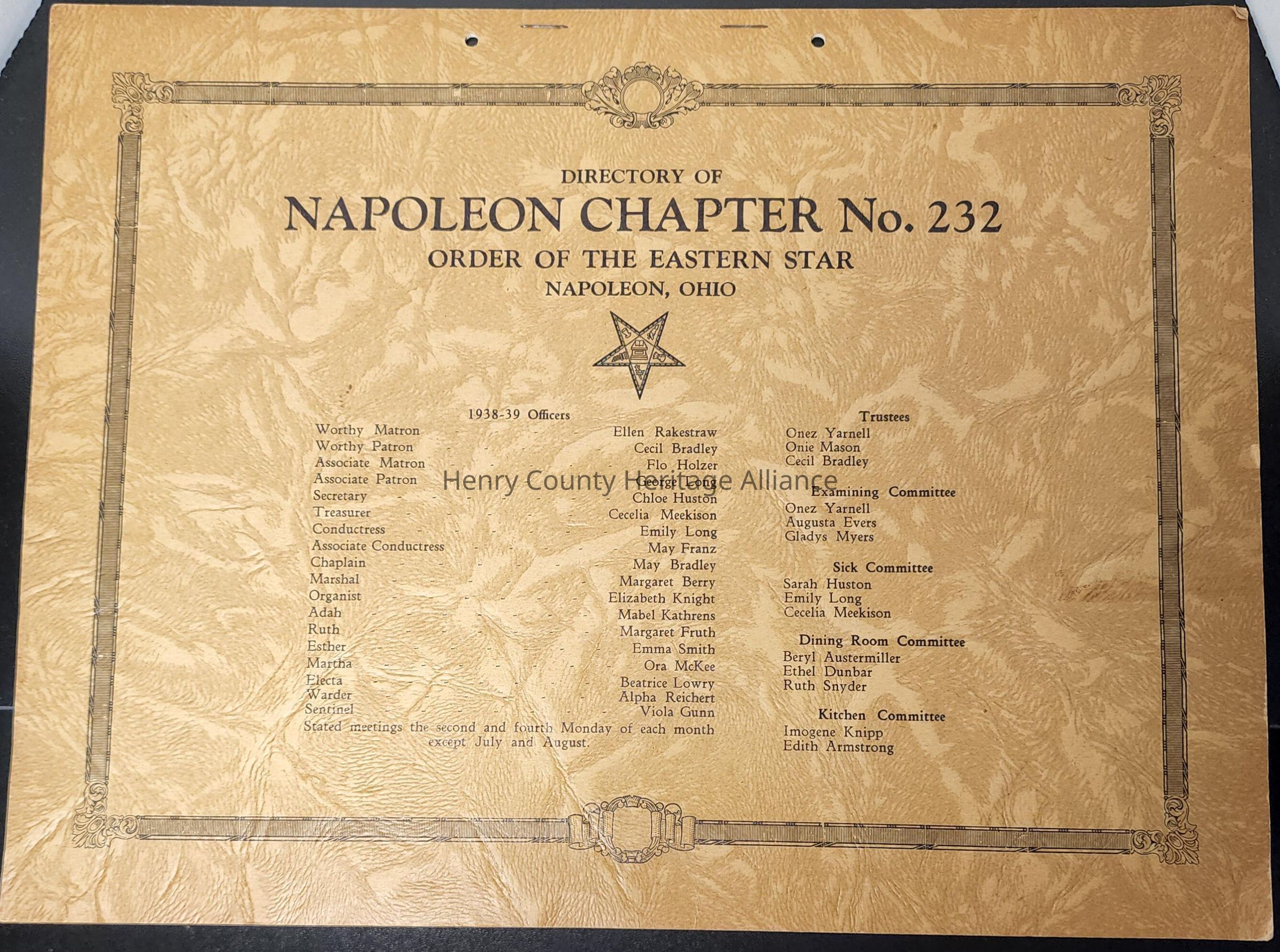Eastern Star Roster, History of Past Matrons, More