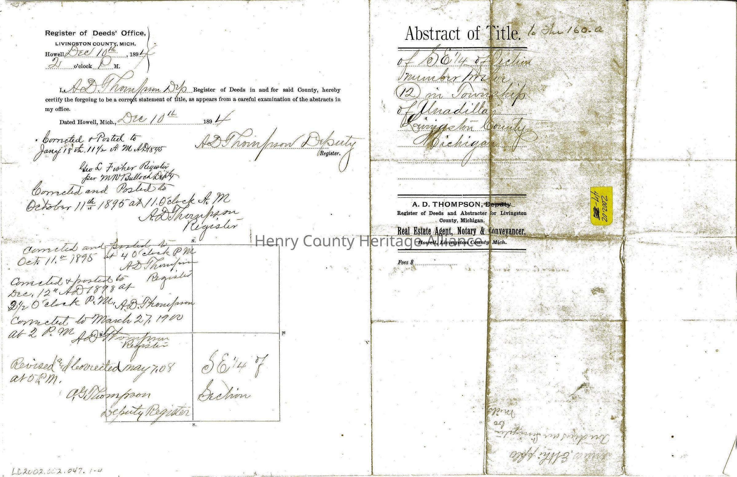Edmond Pennock Abstract of title in Michigan