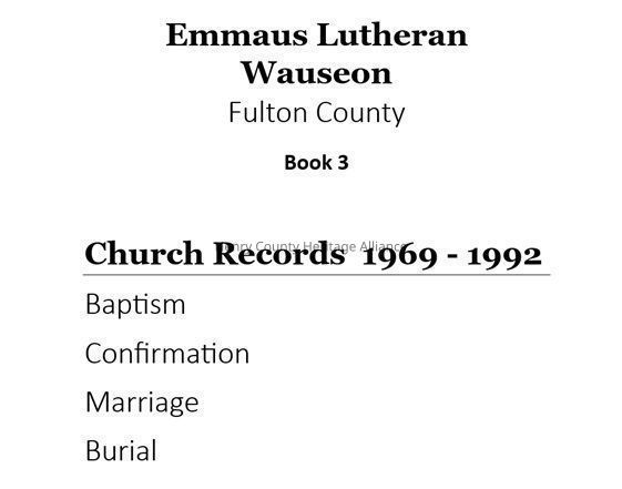 215 pages Wauseon, Fulton County, Ohio - Contains copies of records of official ministerial acts (baptism, confirmation, marriage, funeral) for the years 1969 - 1992.