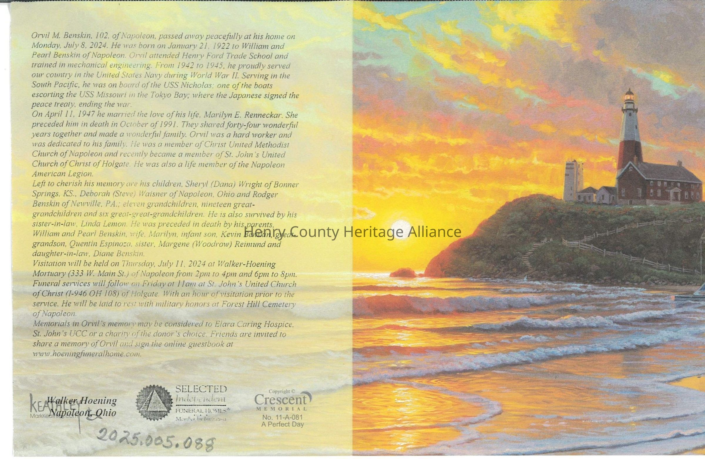 Funeral Folder for Orvil M. Benskin (1/21/1922 - 7/8/2024)