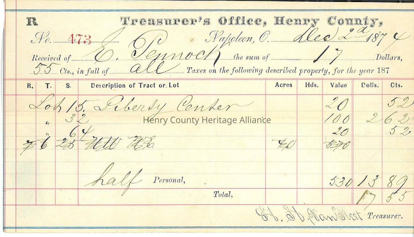 Henry County Land Taxes Receipt of Edmond Pennock