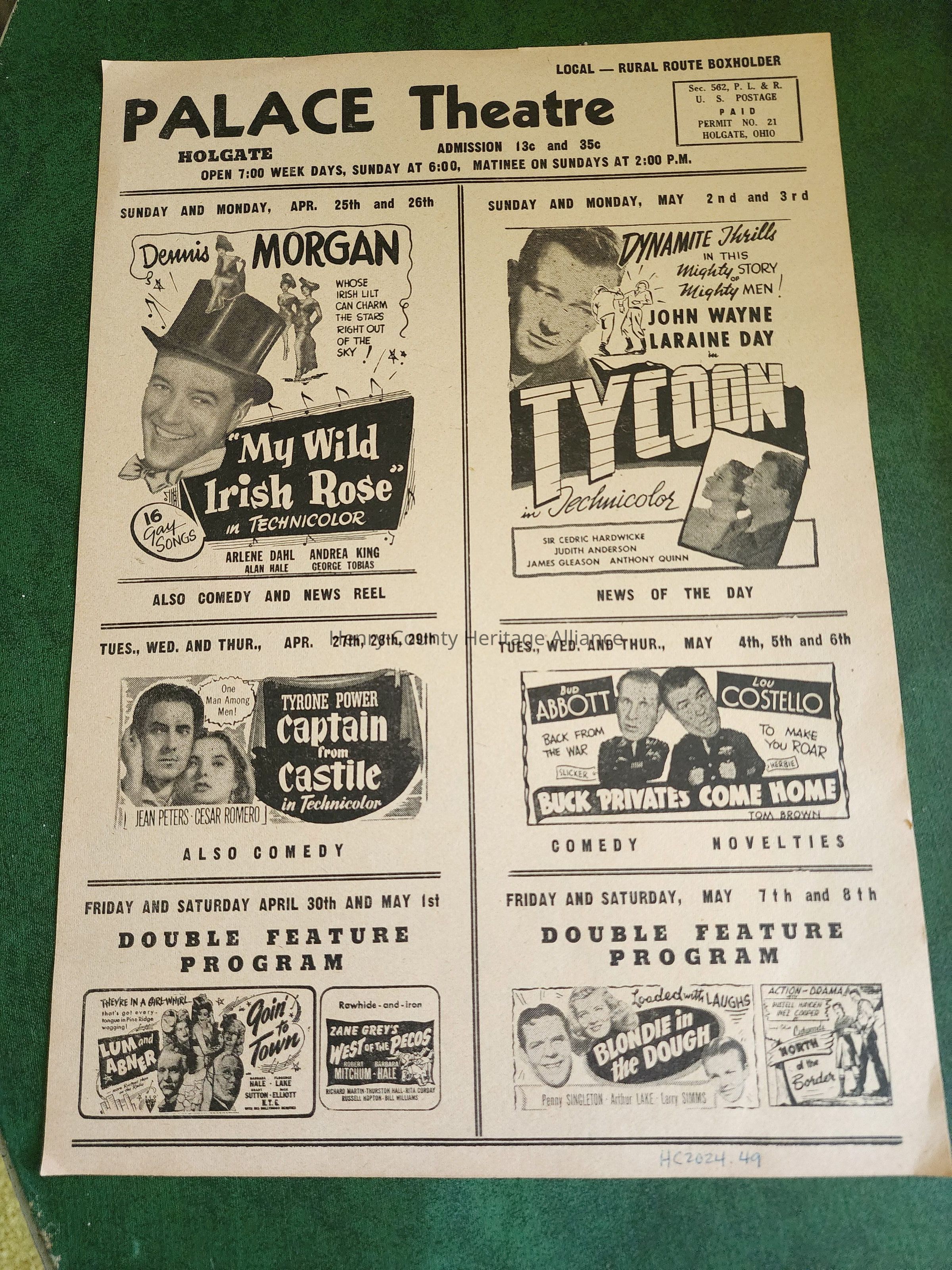 Holgate Palace theatre Movie Flyer, 40's