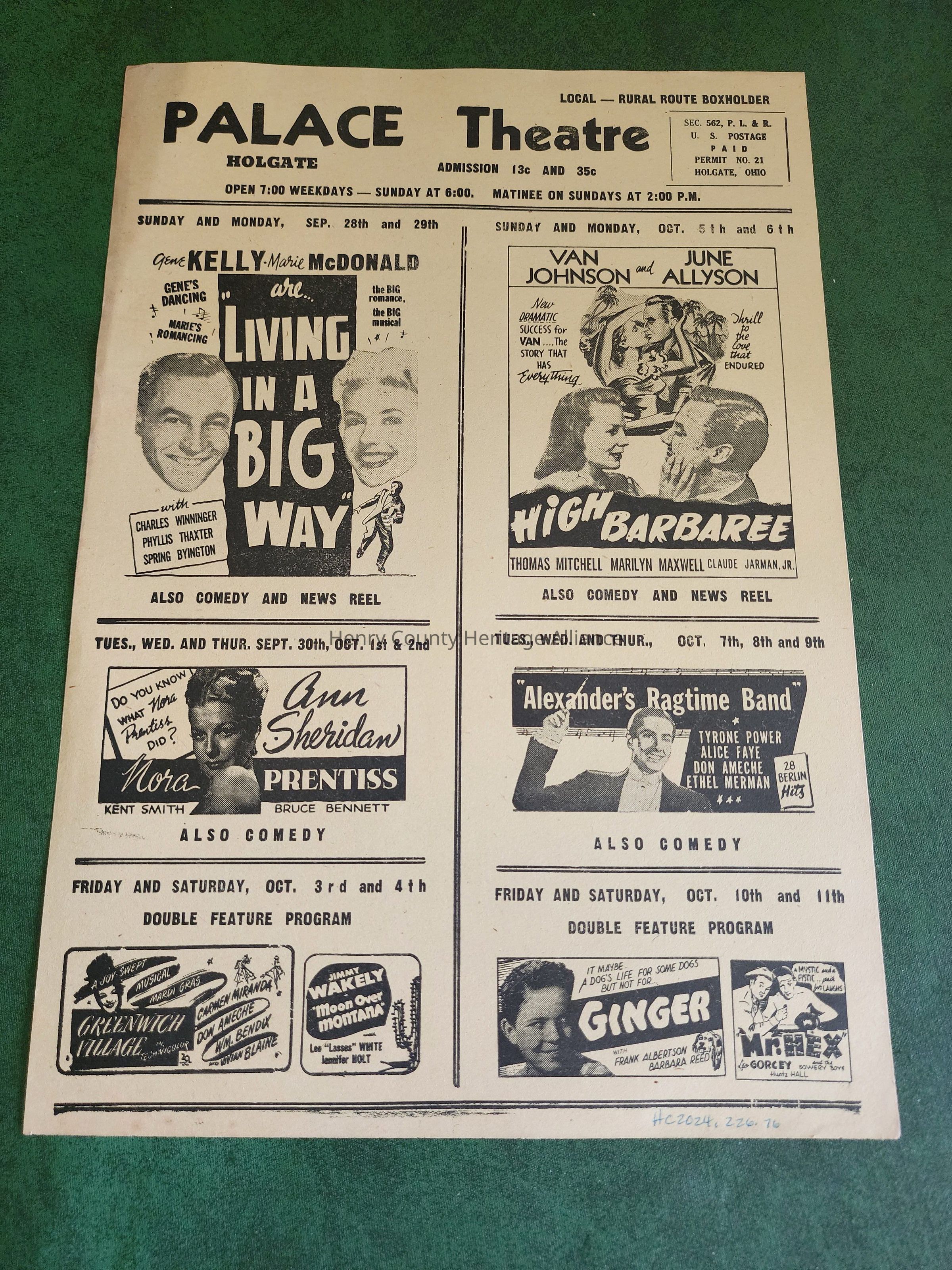 Holgate Palace Theatre Movie FLyer, 40's