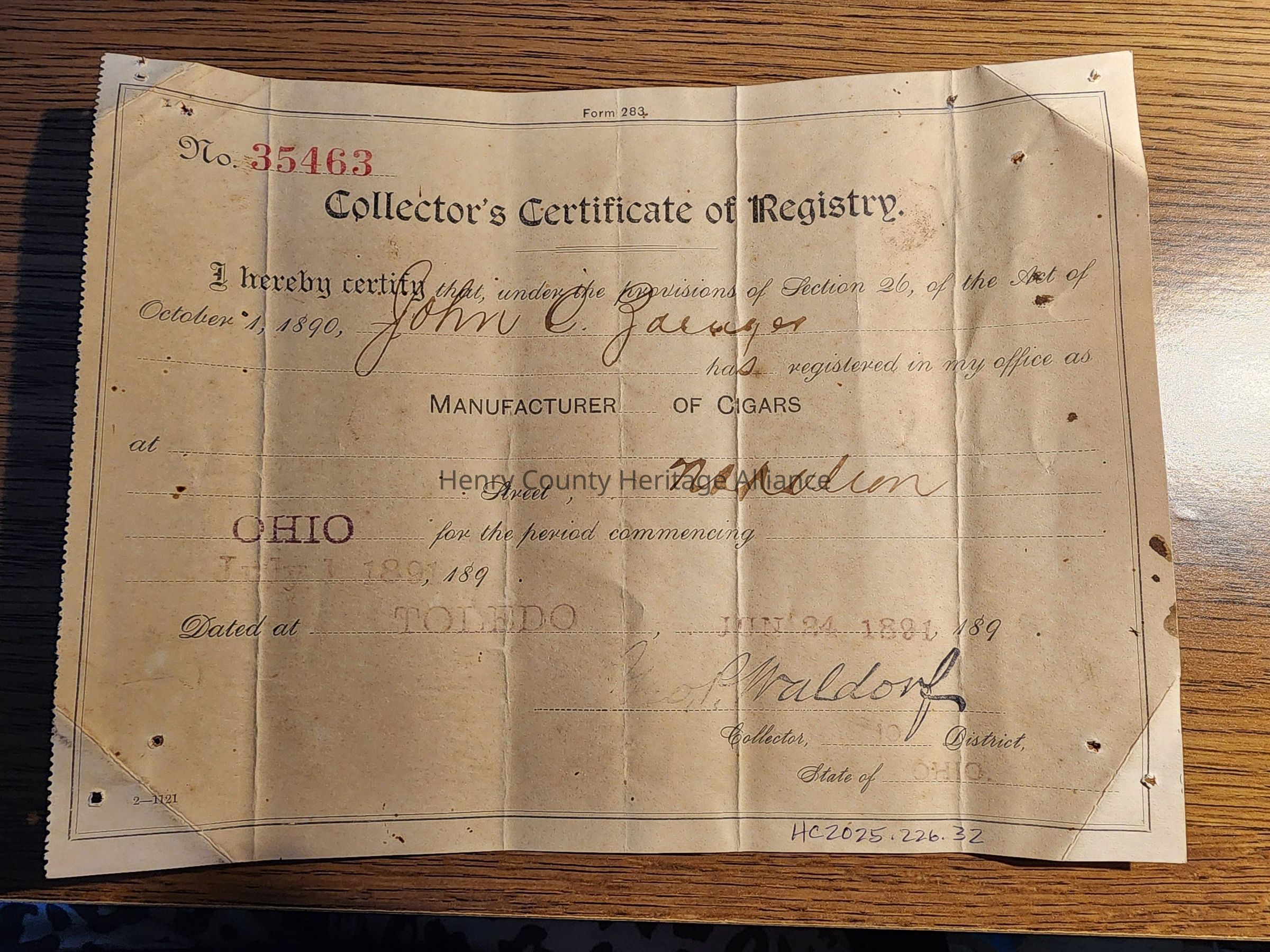 John G Zaenger Cigars Paperwork