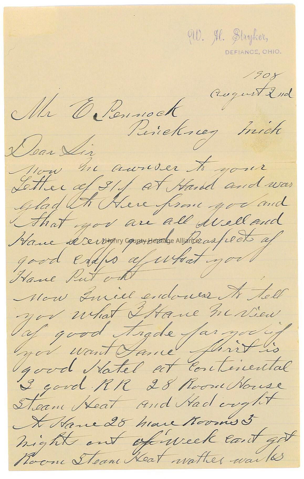 Letter to Edmund Pennock in 1908