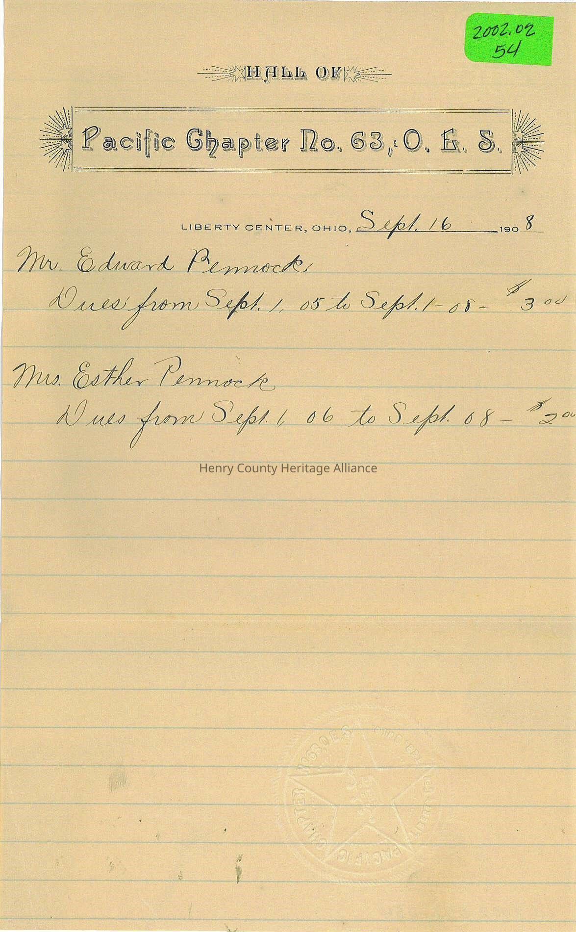 Lodge Dues for Mr. and Mrs. Edmond Pennock
