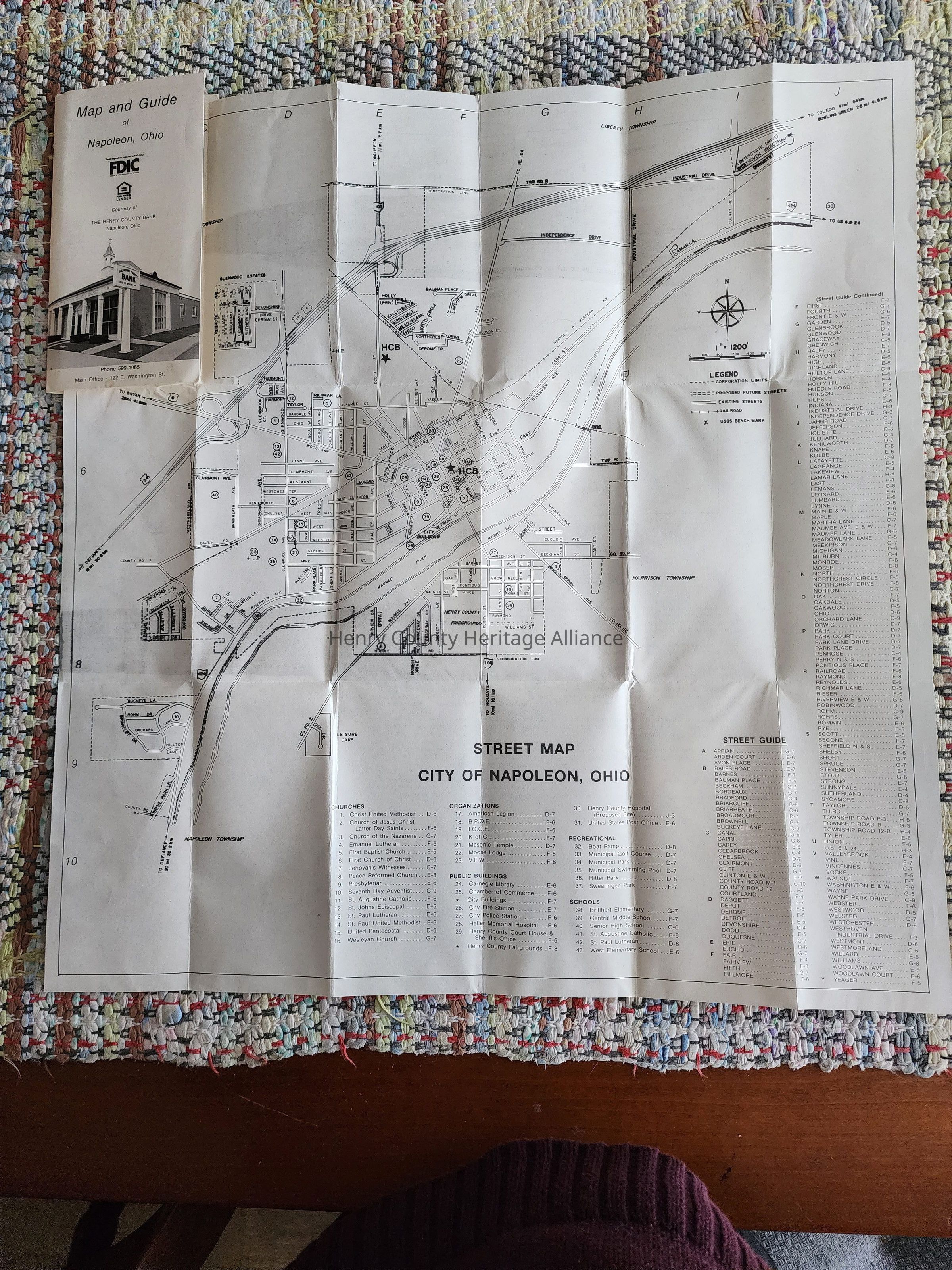 Map & Guide, Napoleon, Ohio, Henry County Bank Brochure, 80's, 90's