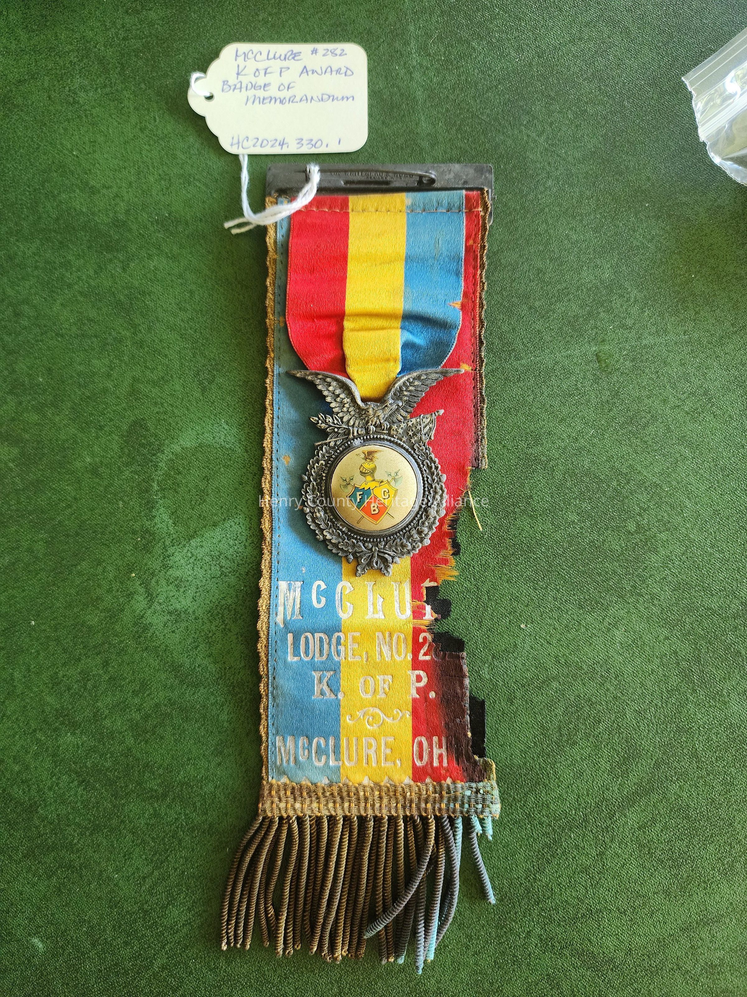 McClure Lodge 282, K of P, Badge of Memorandum, Owner Evelyn & Geo. Carlisle