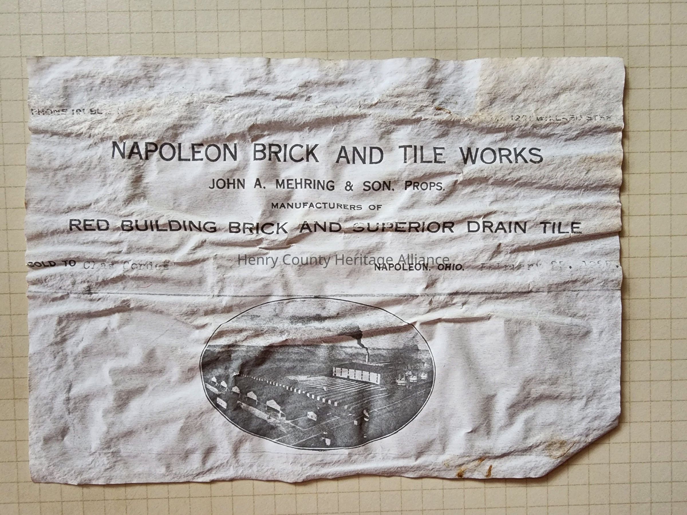 Napoleon Brick & Tile Works Letterhead