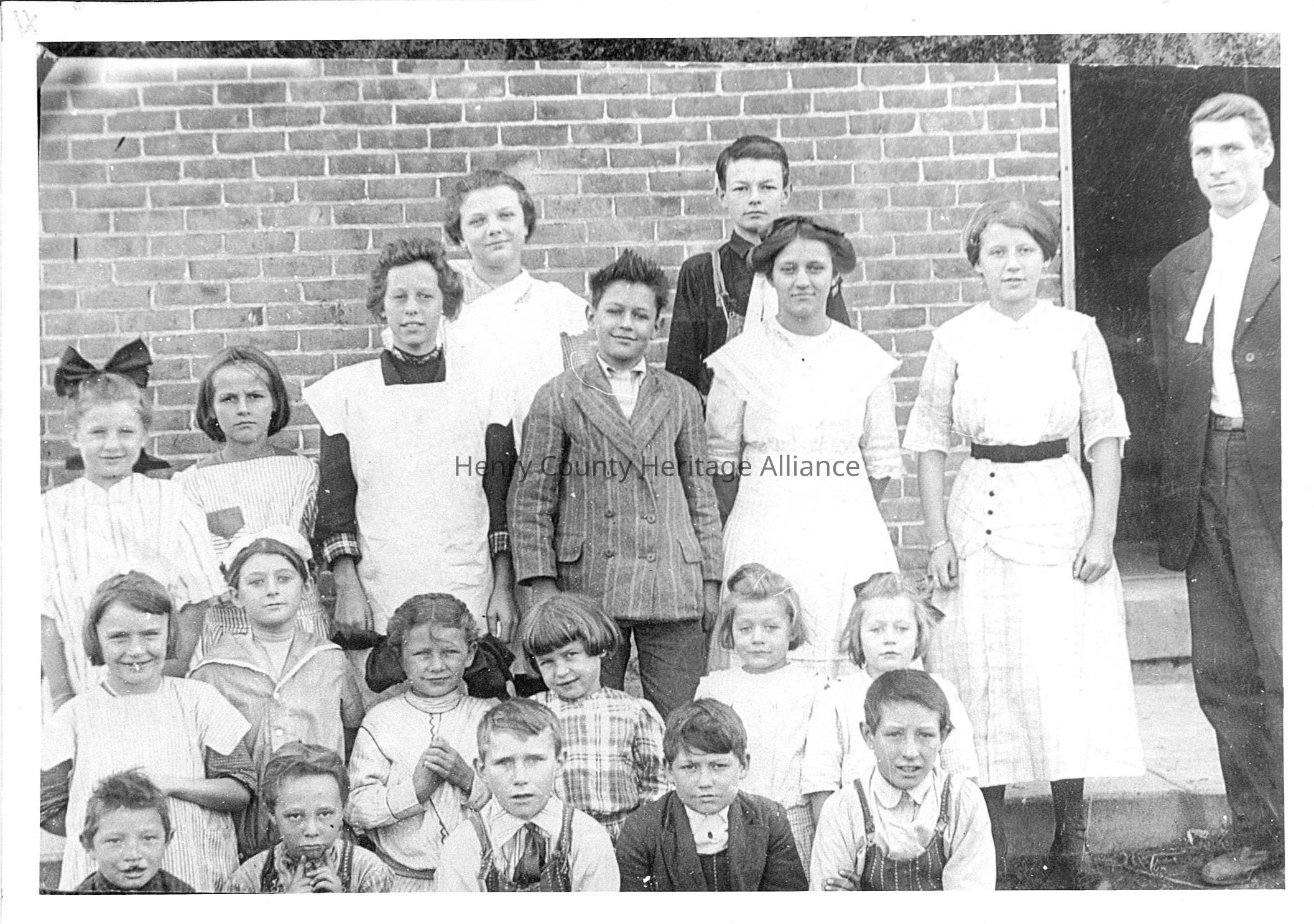 Photo of Jenny Shoemaker(Gutemore) (1904-91) and Harold Bollman (1906-89) with Unidentified Students at the Liberty Twp. SchoolDescription