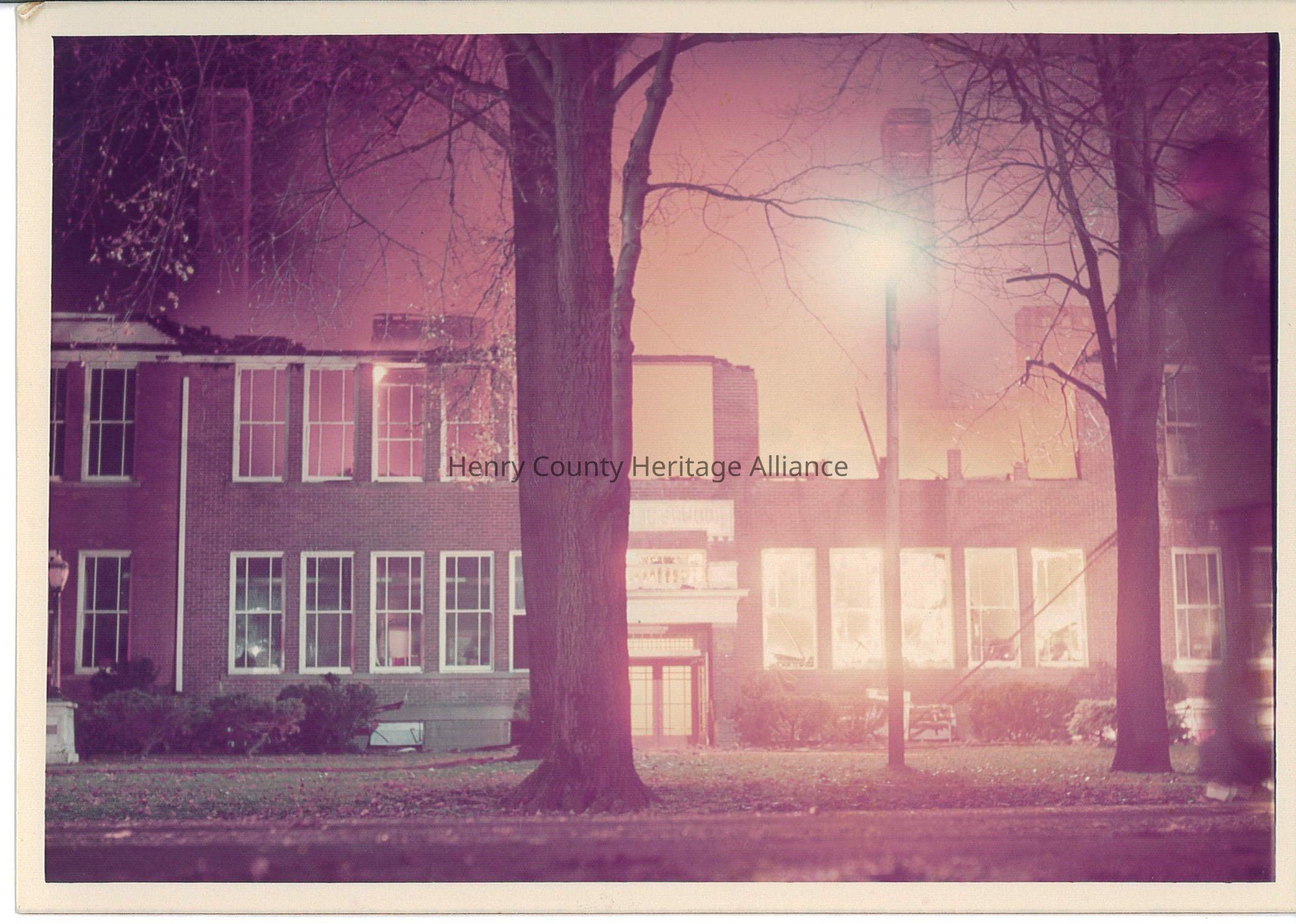 Photo of Liberty Center School Building Burning -November 1972