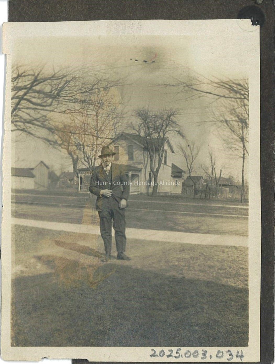 Photo of unidentified man in front of farm home from the Mohler/Follett Family