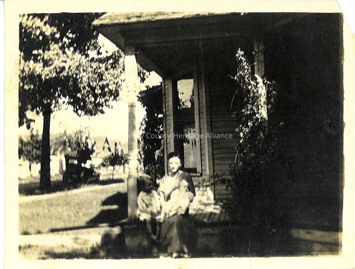 Photo of Unidentified Woman and Two Children on House Porch Steps from the Mohler/Follett FamilyDescription