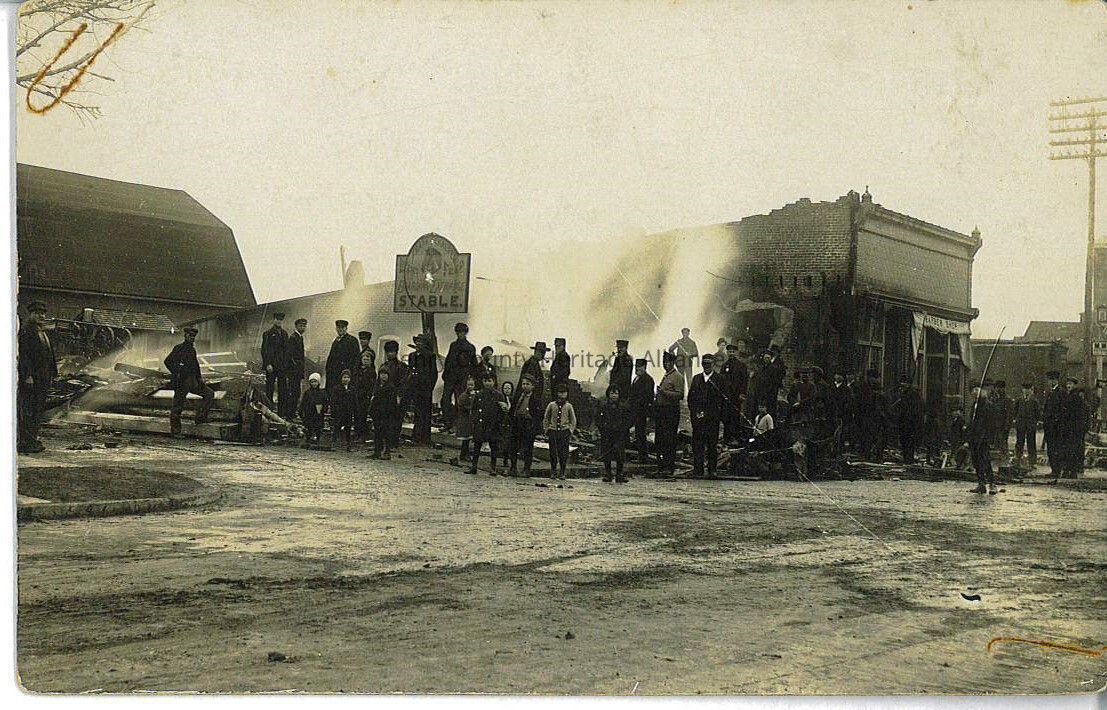 Post card of Southeast Corner of North & East Street after the fire in the 1920''s in Liberty Center.