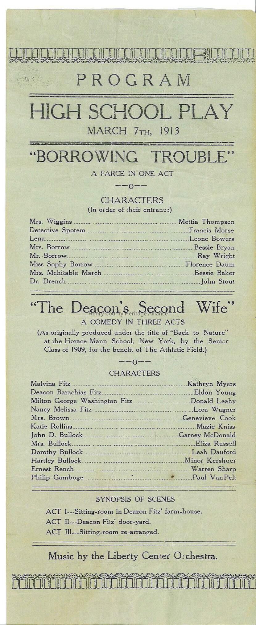 Program for the Liberty Center High School 1913 Senior Class Play