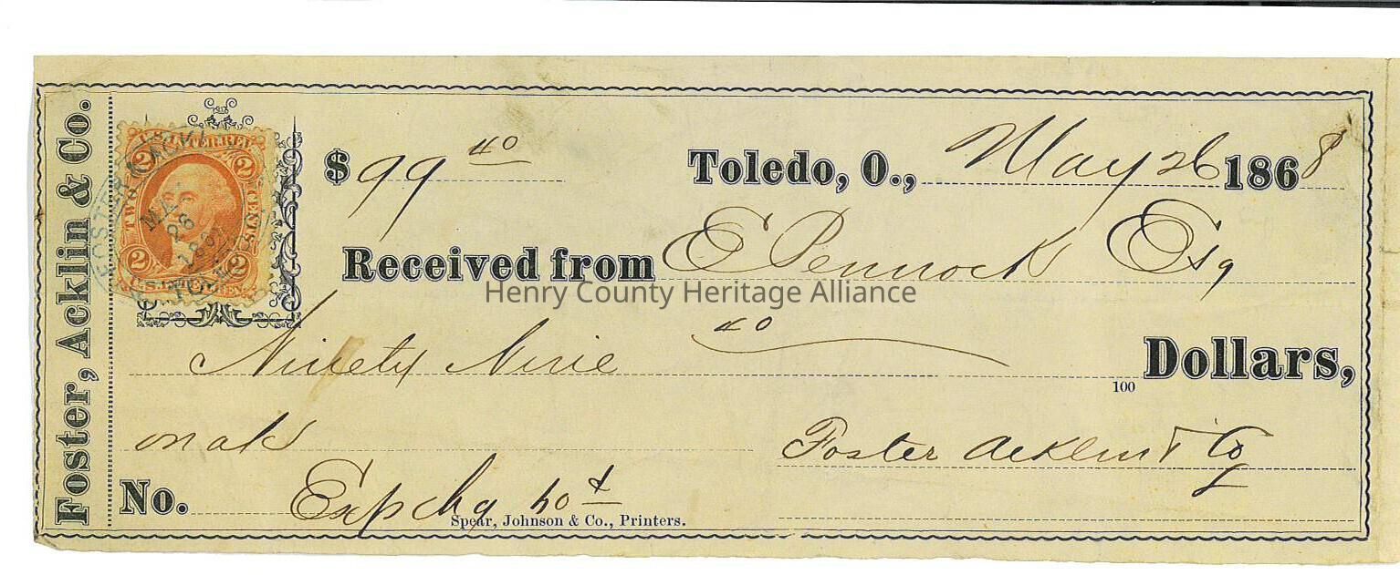 Receipt from Foster, Acklin & Company in Toledo Ohio