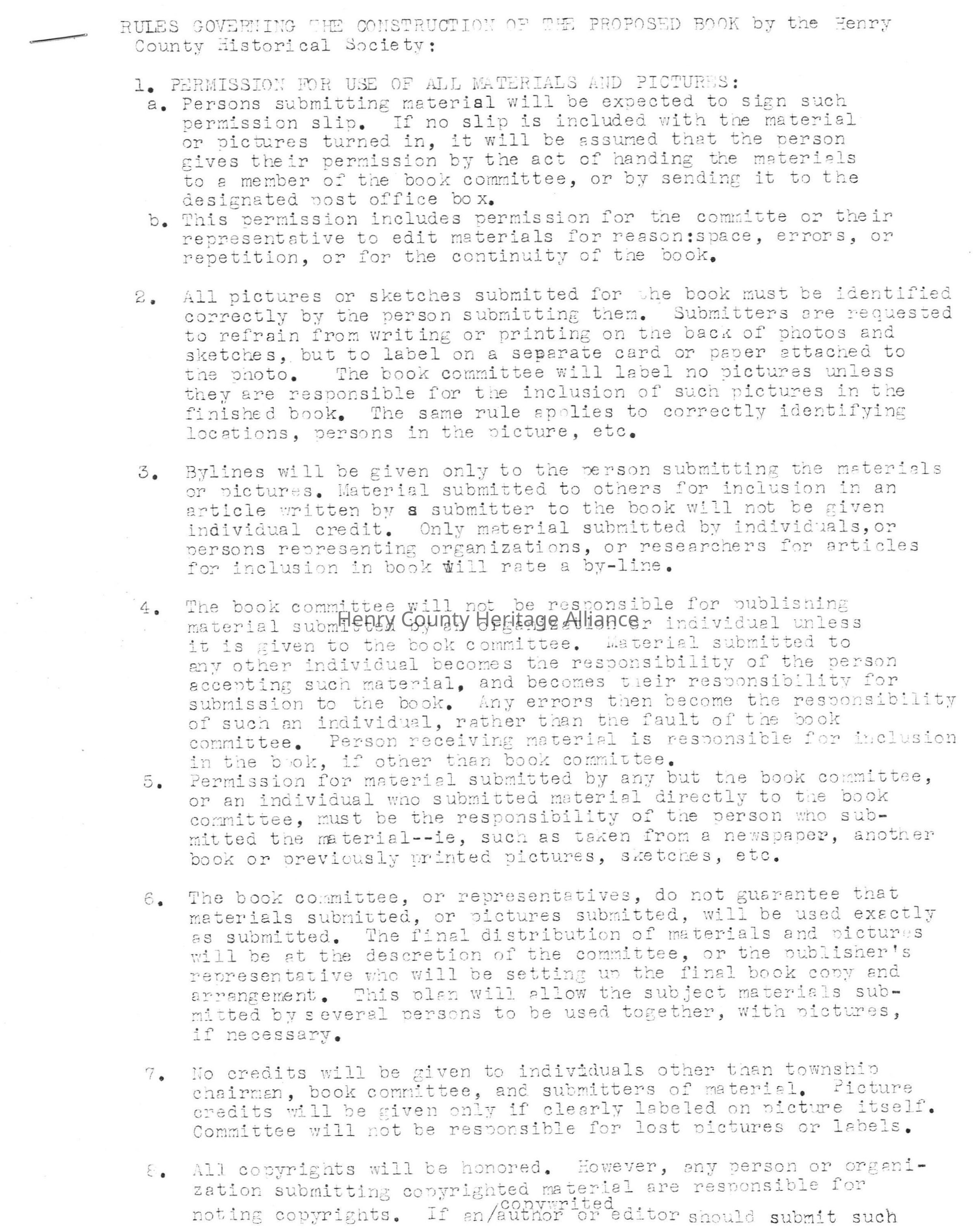 Rules Governing The Construction of the Proposed Book by Henry County Historical SocietyScope and Content