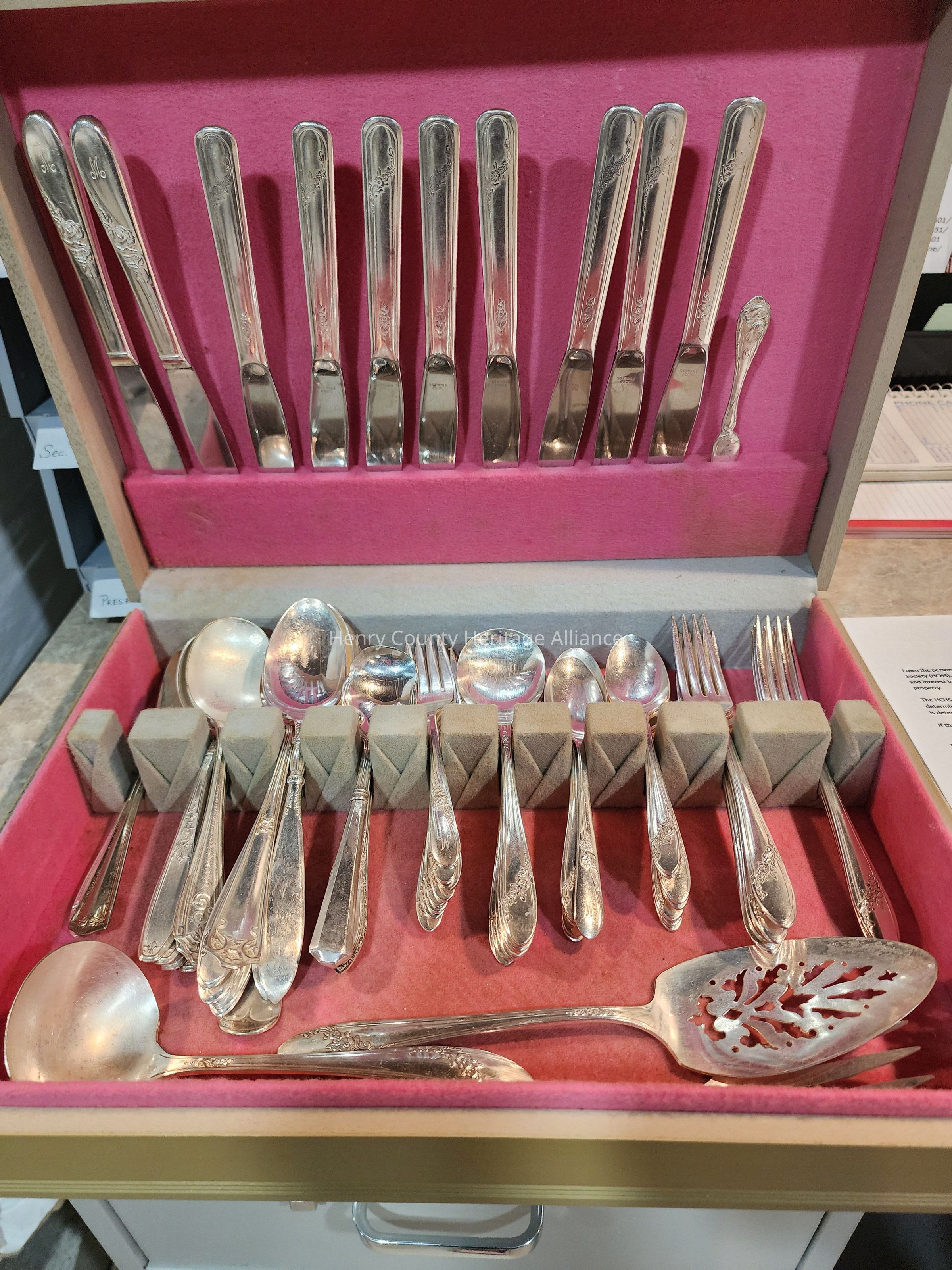 Silverplate Eating Utensils, Wood Case, "Queen Bess", Oneida, Community