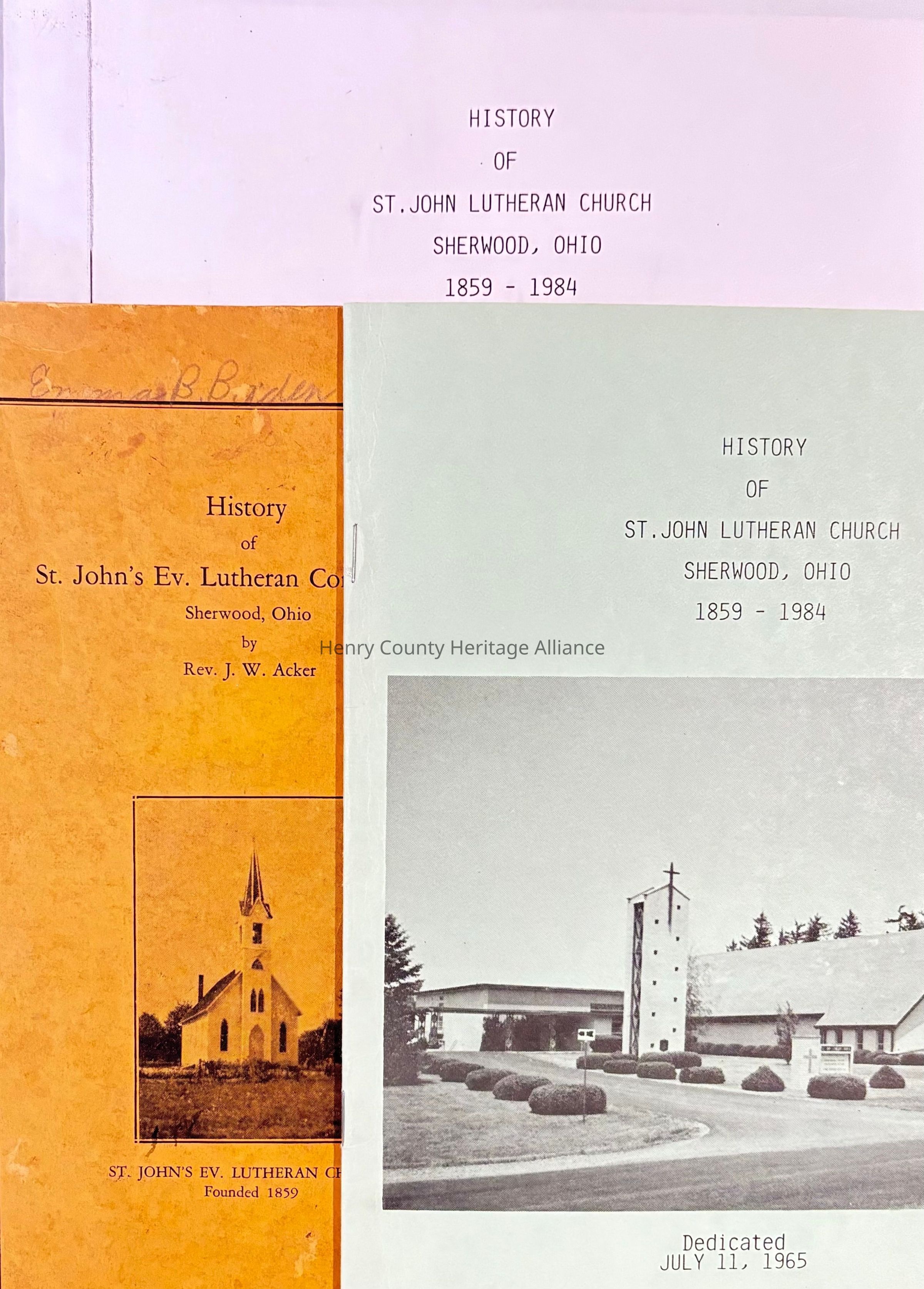 Sherwood, Defiance County, Ohio - Booklet (9 pp.) detailing history of church written by Rev. Acker (after 1939) and booklet prepared for 106th anniversary in 1965 (24 pp.) detailing additional historical information.