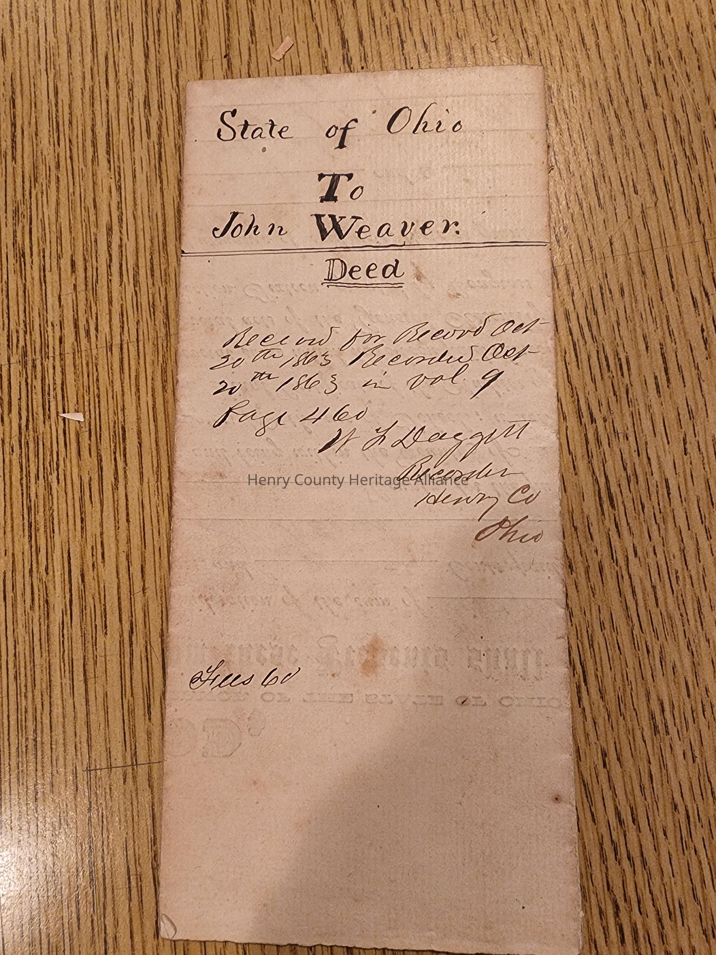 State of Ohio to John Weaver, DEED