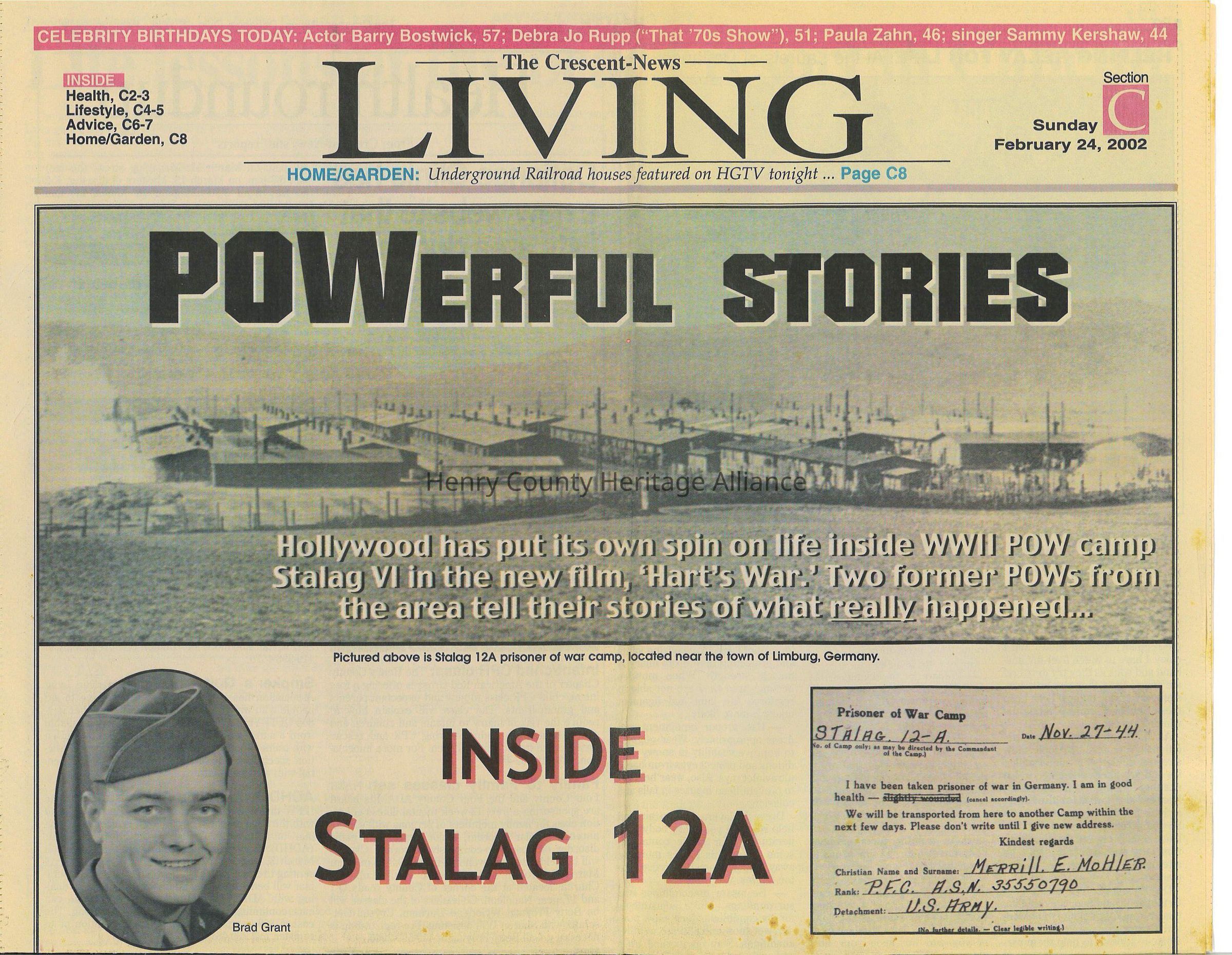 Ted Mohler, WWII P.O.W. Featured in The Crescent News on February 24, 2002