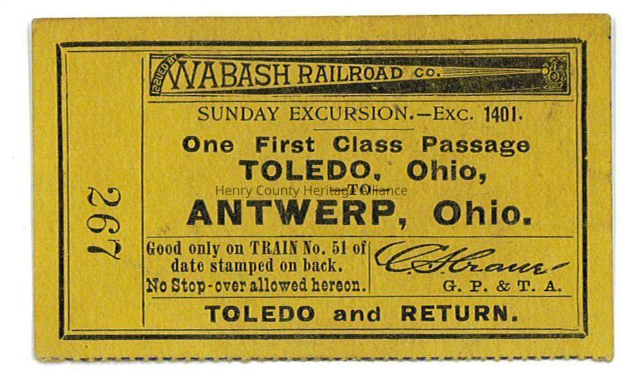 Wabash Railroad Ticket From Toledo, Ohio to Antwerp, Ohio, September 3, 1899.