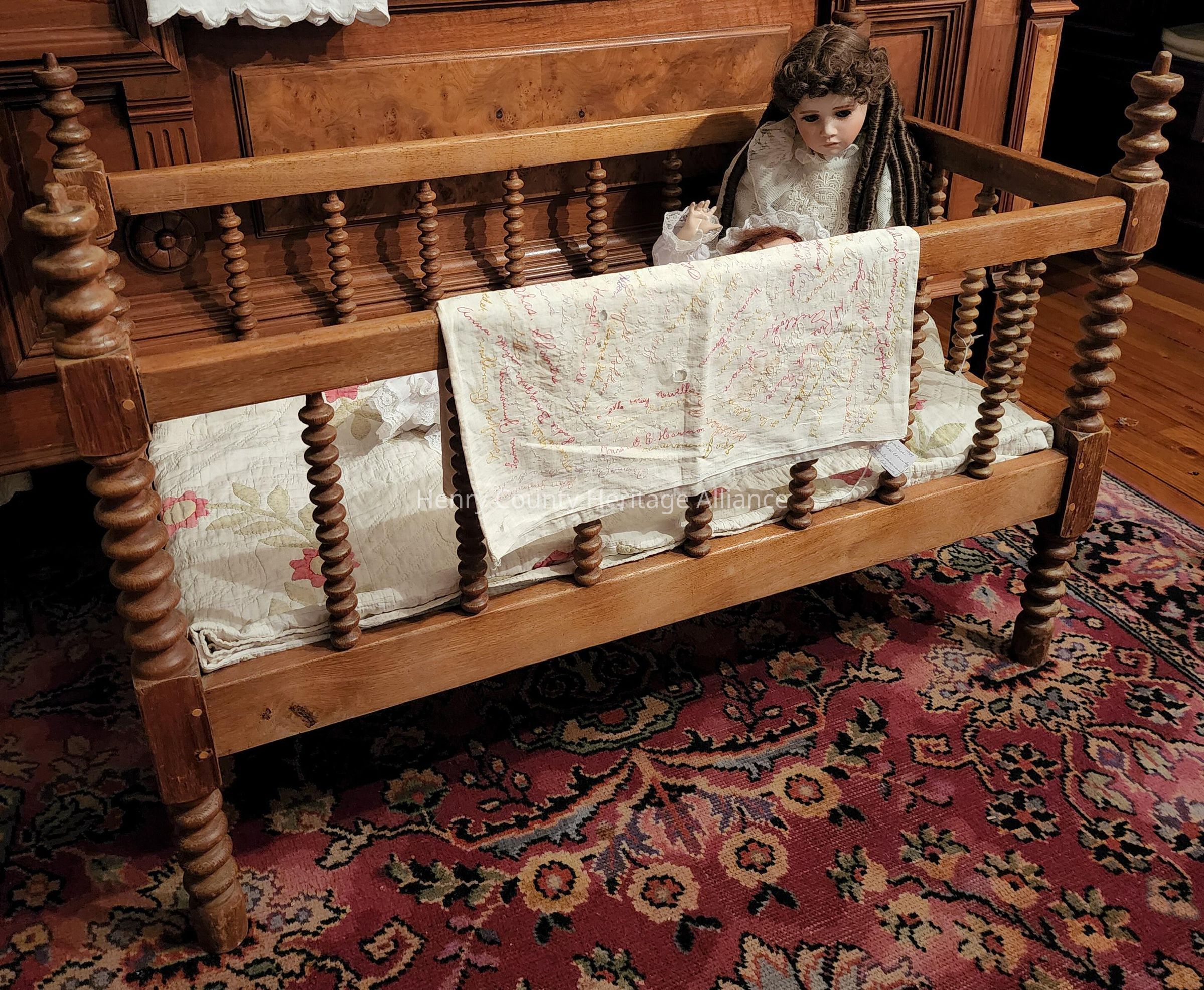Walnut Baby Bed, Turned Spindles