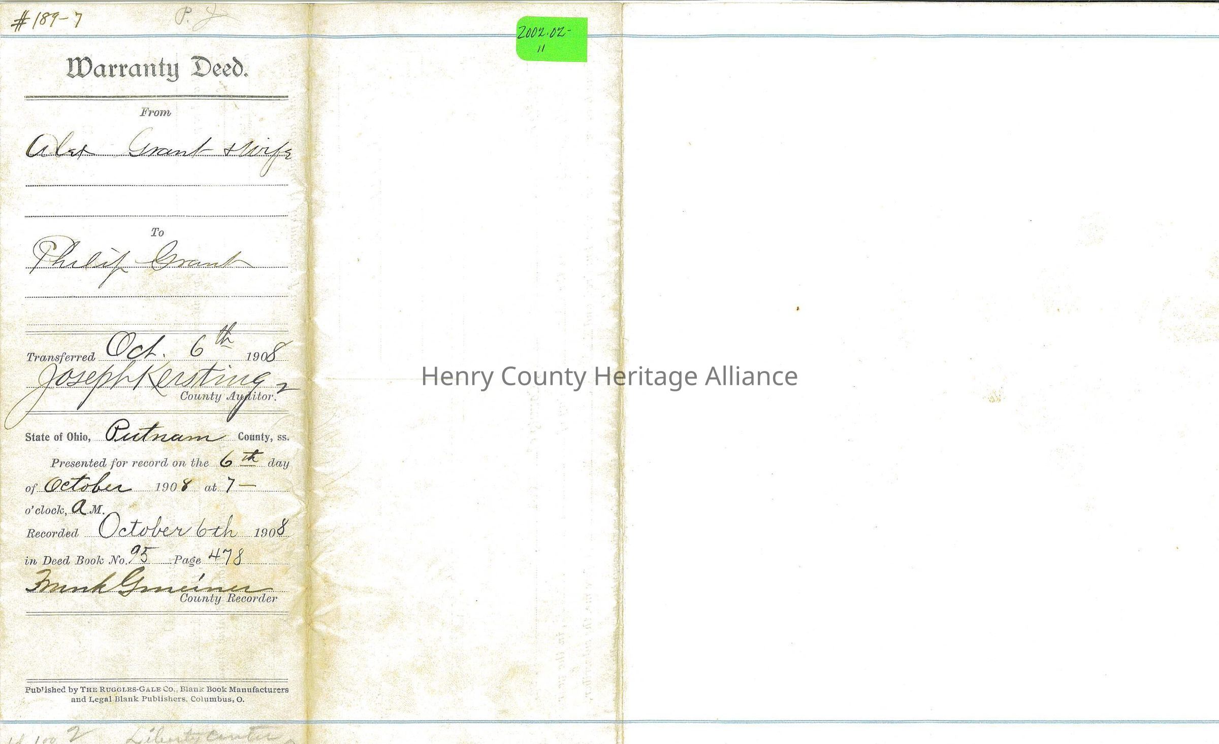 Warranty Deed between Alex Grant and Philip Grant