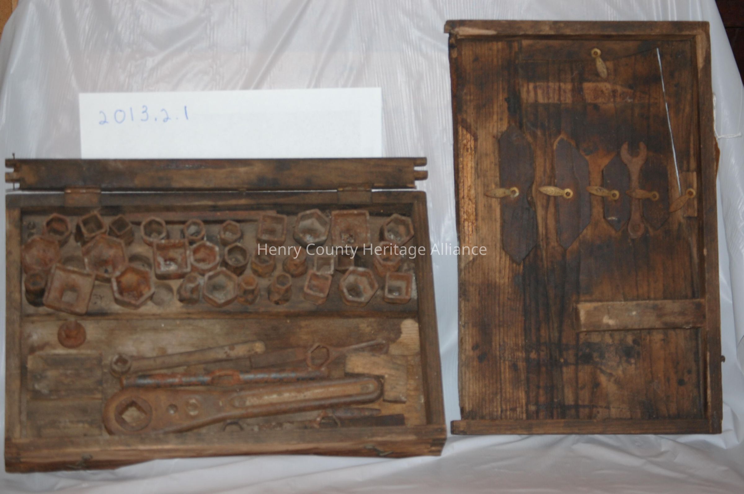 Ratchet & Socket Set, wooden box with ratchet and sockets & wrenches