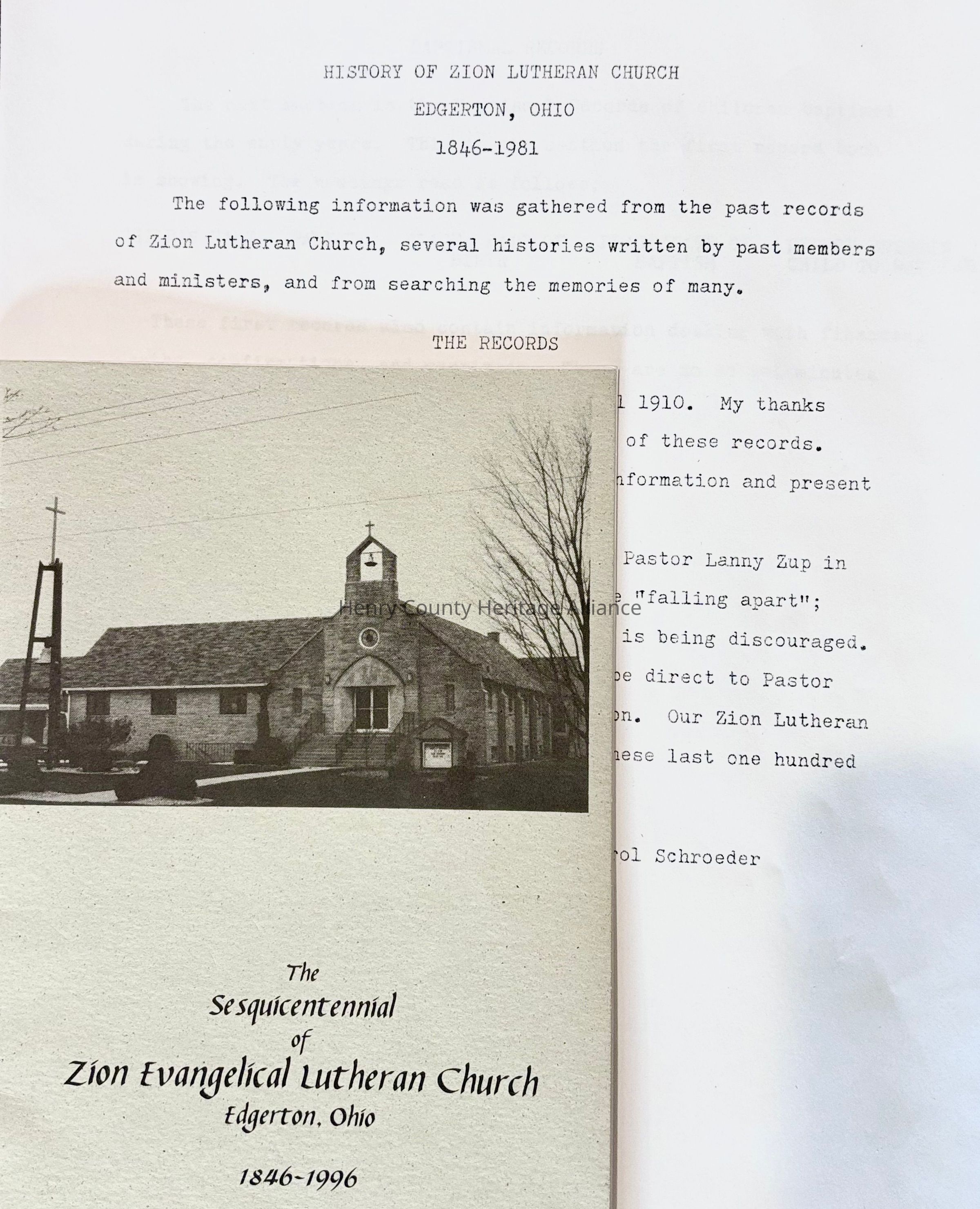 2 items Milford Twp., Defiance County, Ohio - Items contain history of the church. Located at Cicero Road on Williams-Defiance County Line