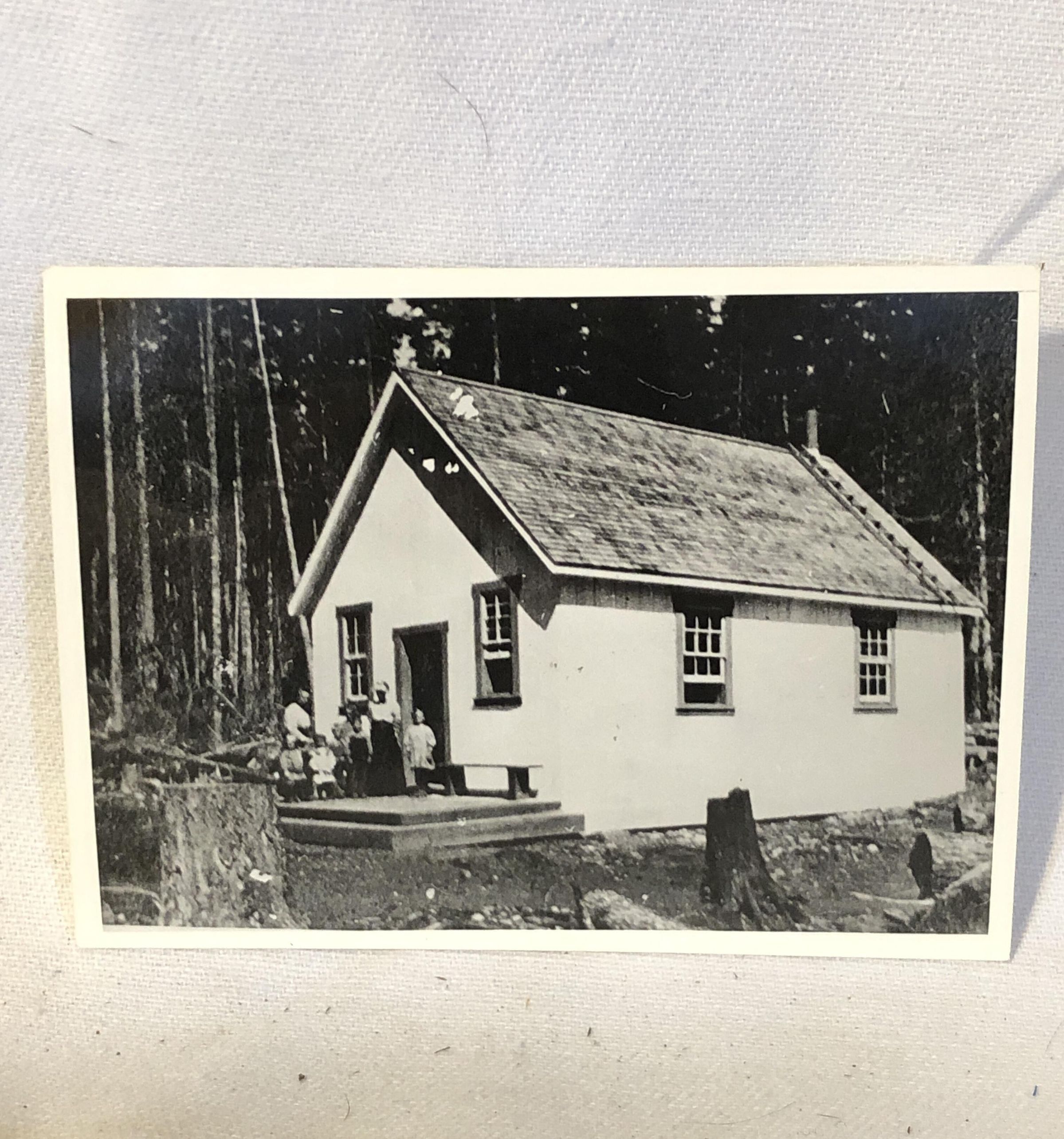 '1911 Built as a school on Frank Bros Dairy Farm Ebys Landing on Skeena River downriver from Terrace, Torn down in 1974, used for community services, community hall, earliest school.Acquisition