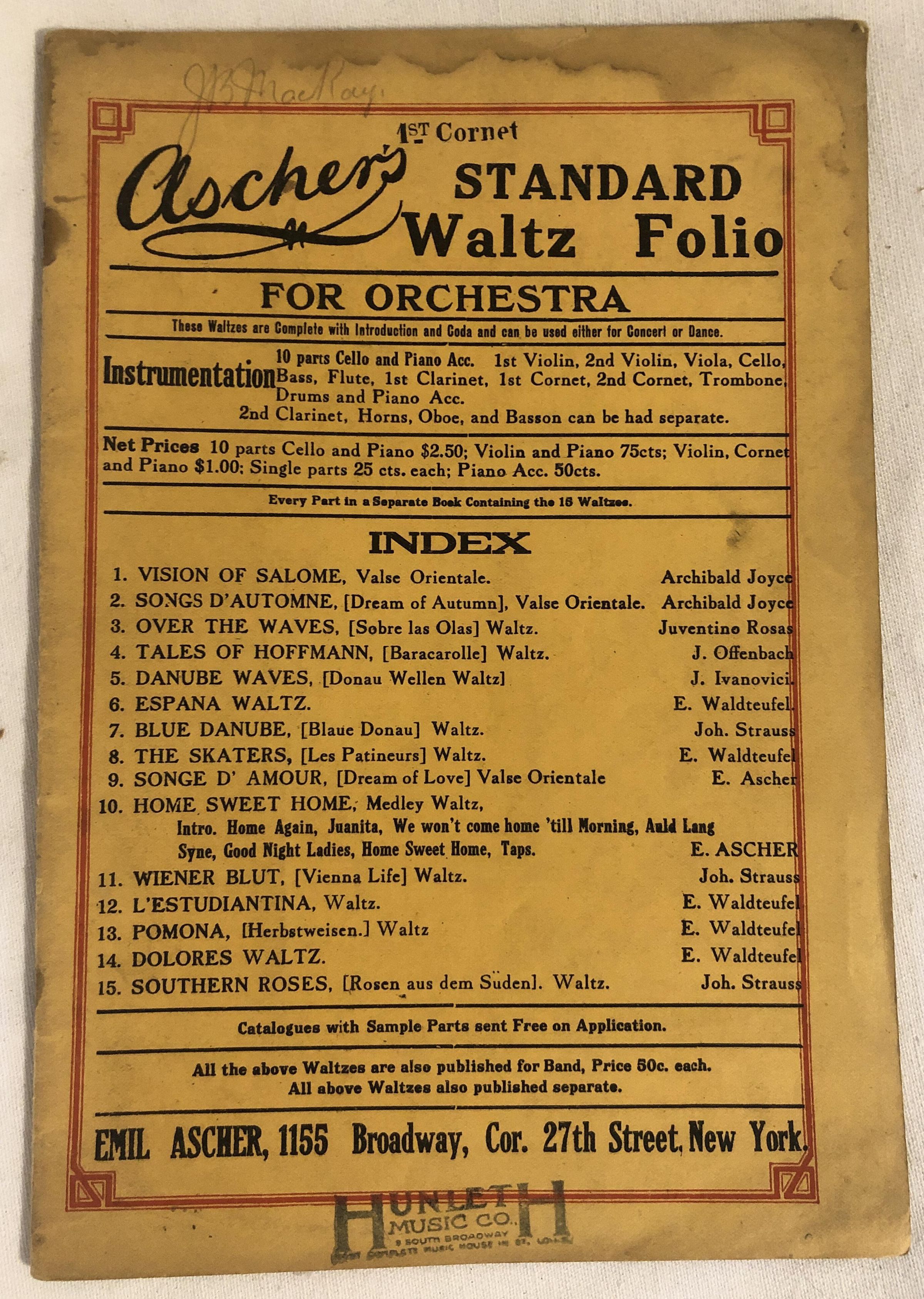 Ascher's Standard Waltz Folio for orchestra.