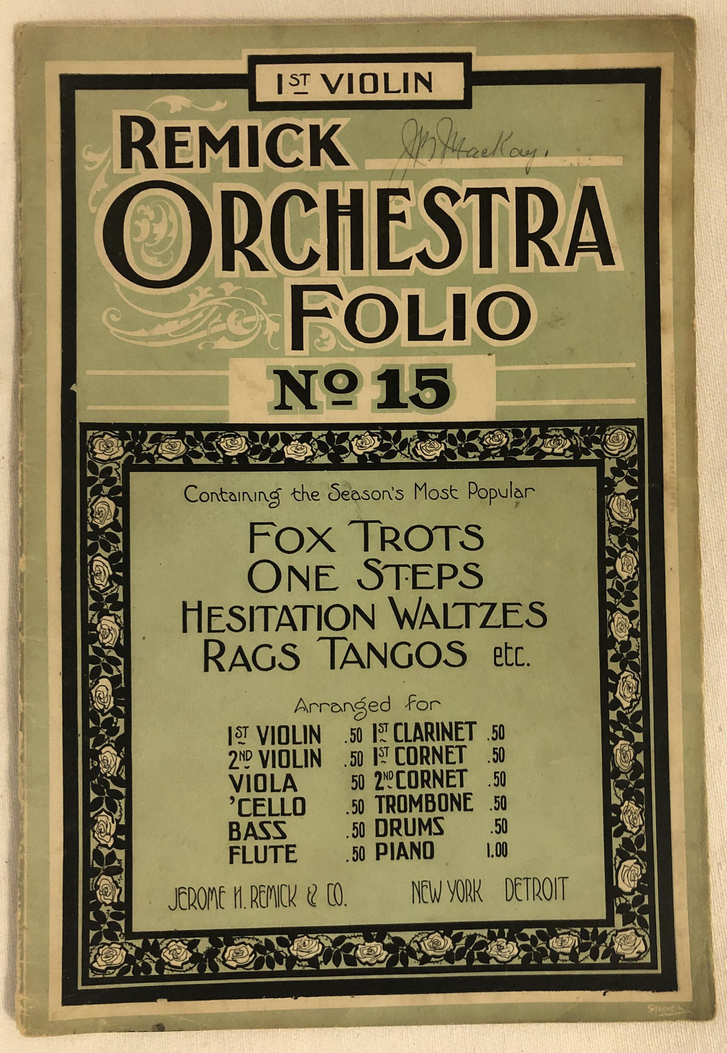 '1st Violin Remick Orchestra Folio No 15'Entry/Object ID