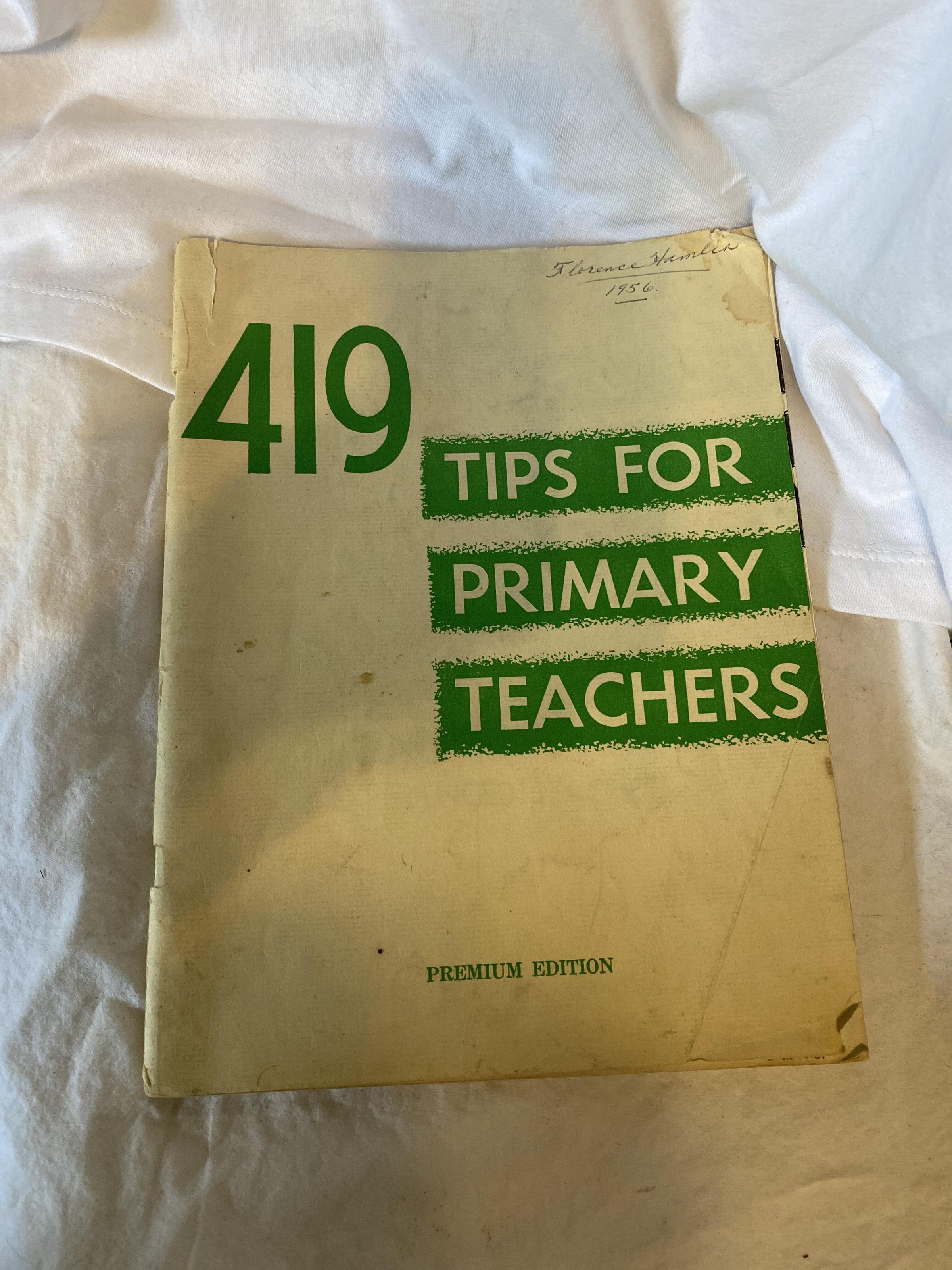 Booklet, from Florence Hamlin in 1956, when donor took over classroom in the 70s this book was in this takeover. School was located in New Hampshire USAcquisition