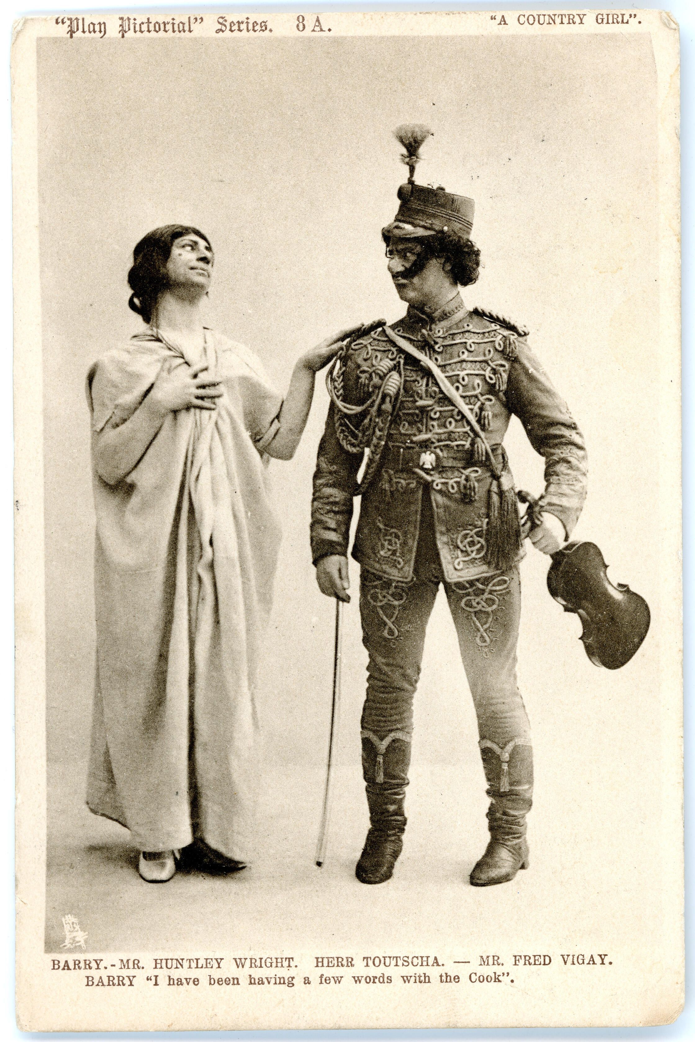 Postcard from 1904 of Mr Huntley Wright playing Barry and Mr Fred Vigay playing Gherr ToutschaCollection