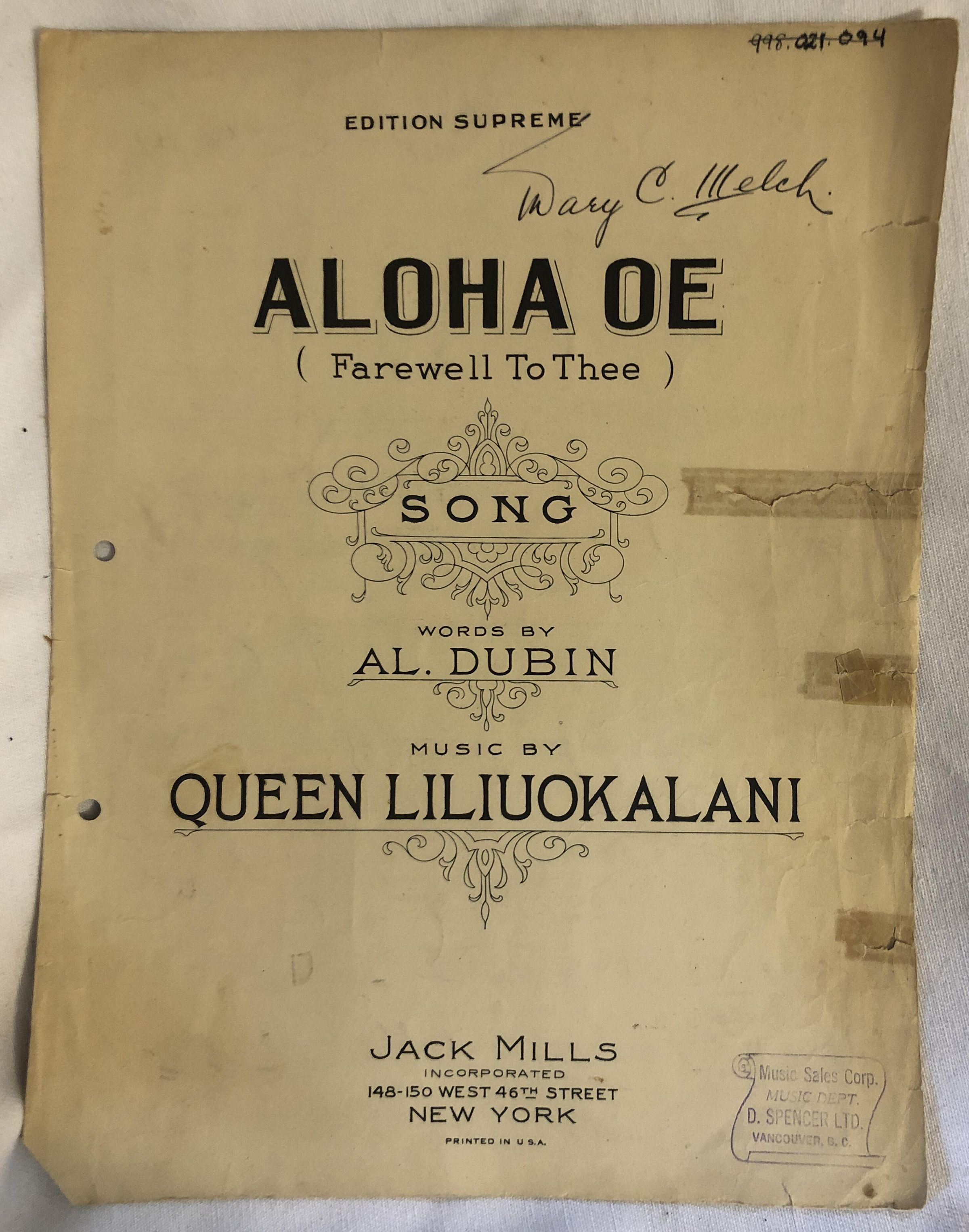 'Aloha Oe' Sheet MusicEntry/Object ID
