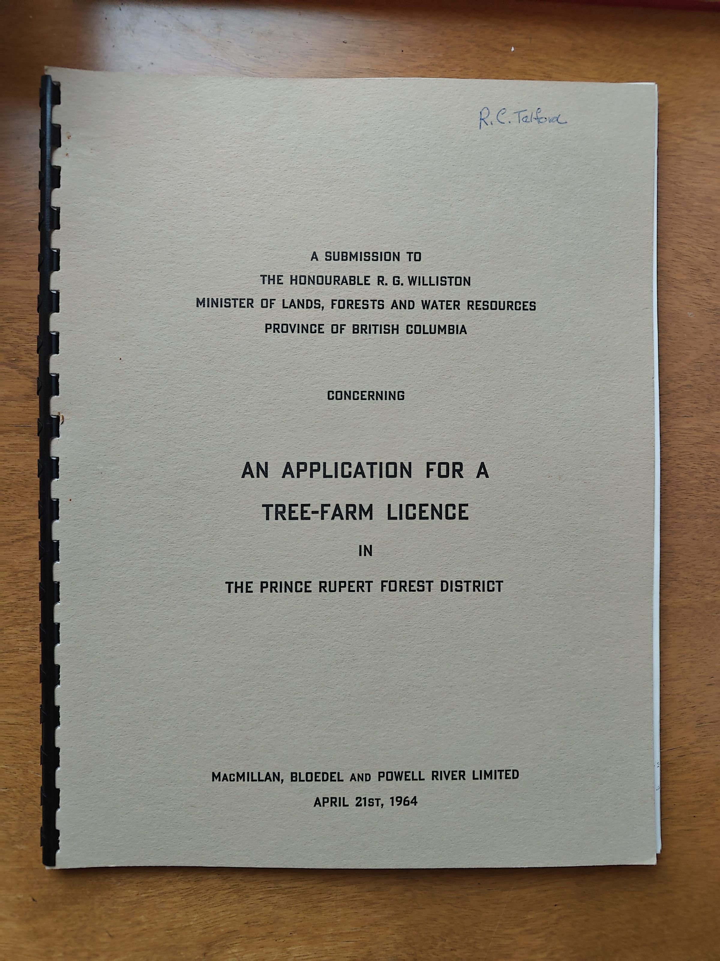 "An application for a tree farm licence in the Prince Rupert Forest District."Subject Person/Organization