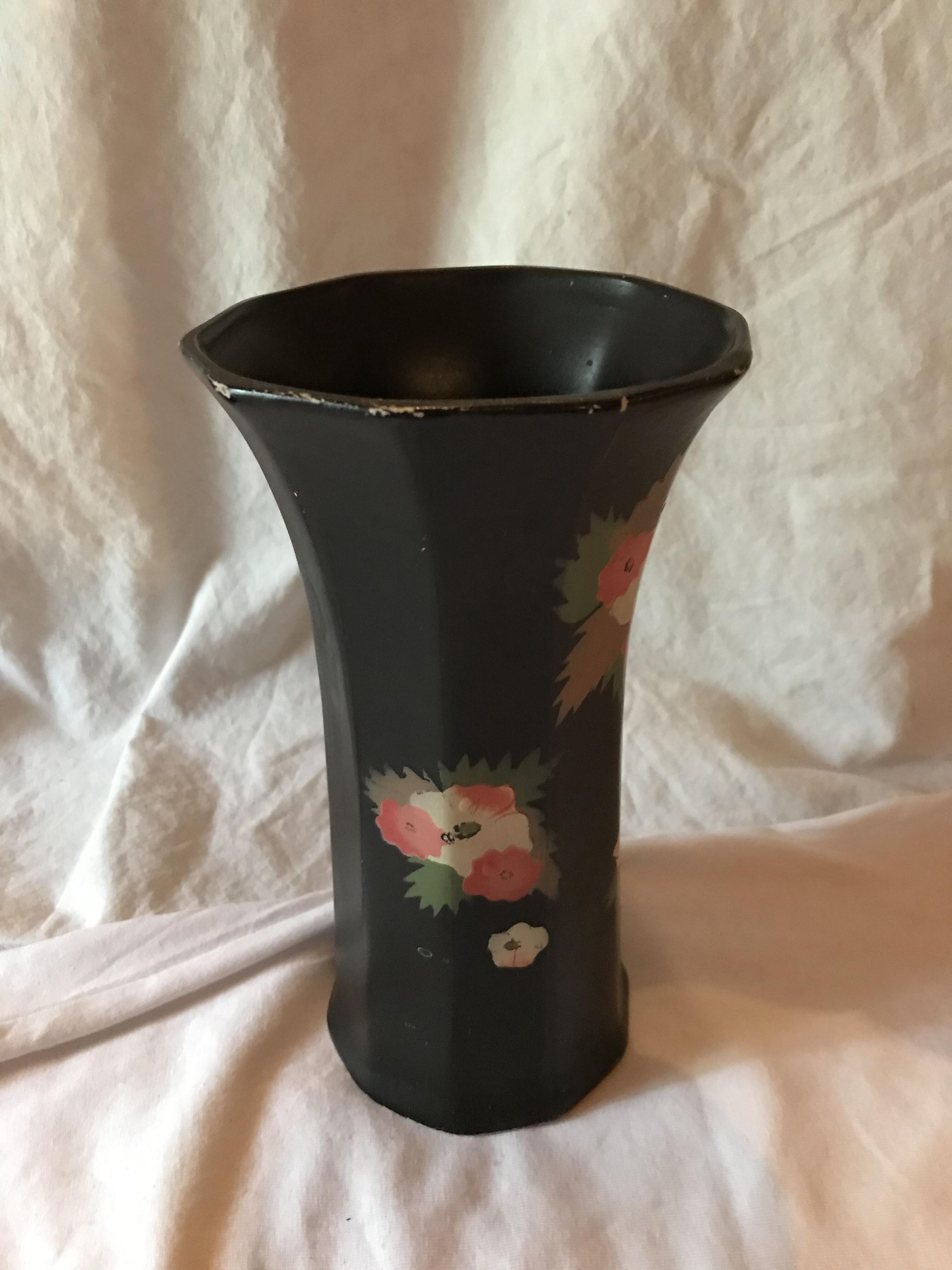 Black vase with flowers on itAcquisition